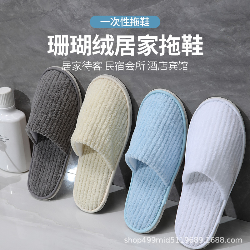 酒店民宿居家待客旅行便携美容院一次性拖鞋珊瑚绒加厚防滑批发