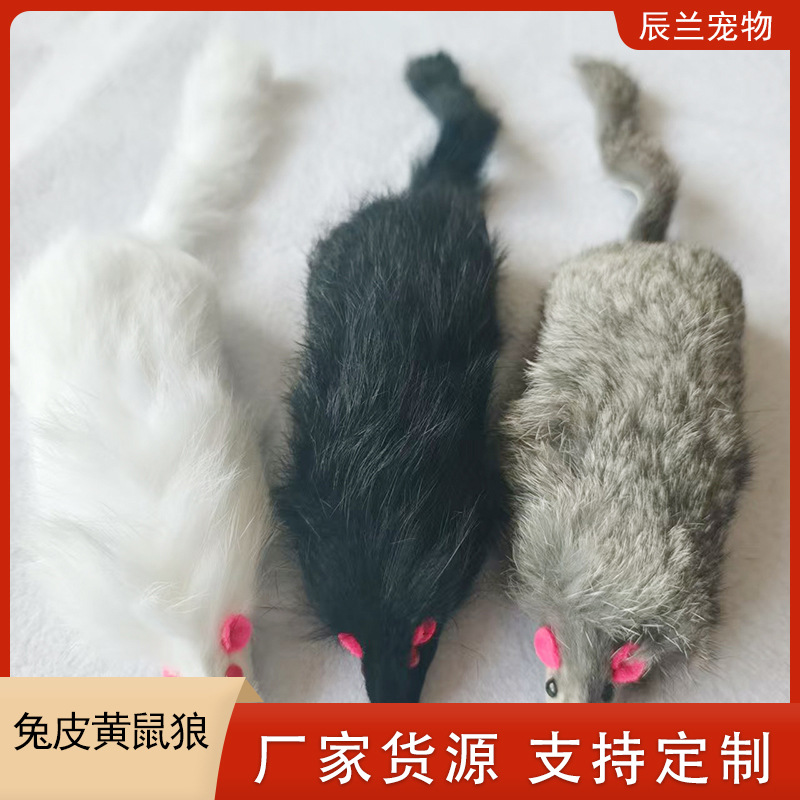 宠物用品工厂兔毛黄鼠狼内含响石啃咬猫咪玩具自嗨玩乐兔皮黄鼬