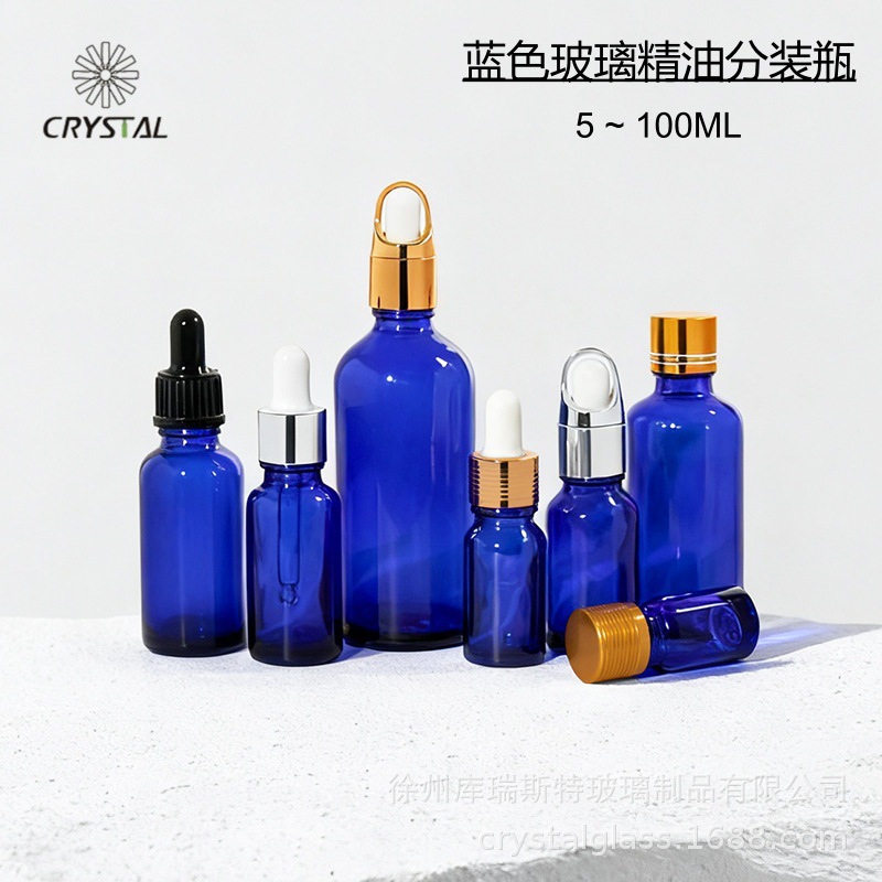 蓝色避光精油瓶胶头滴管蓝色玻璃空瓶便携高端化妆品精华液分装瓶