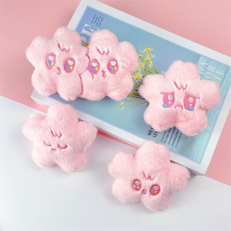 卡哇伊少女粉星星胸针挂件钥匙扣玩偶挂饰毛绒公仔包包装饰辅料