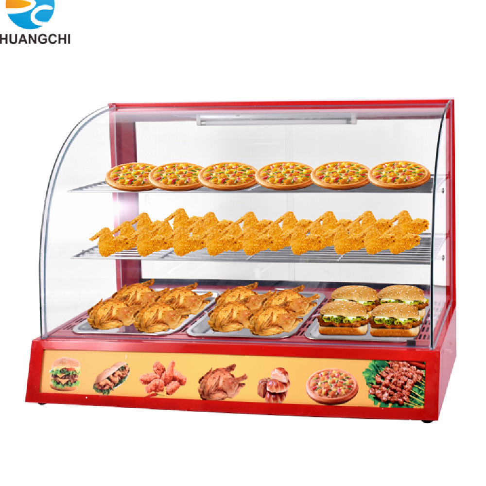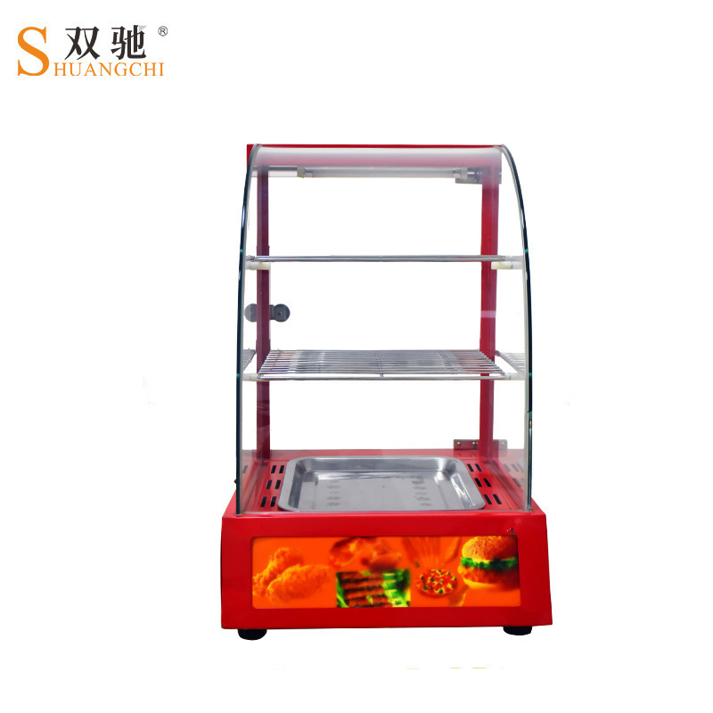 双驰出口红色弧形三层保温柜商用食品加热保鲜柜恒温陈列展示柜