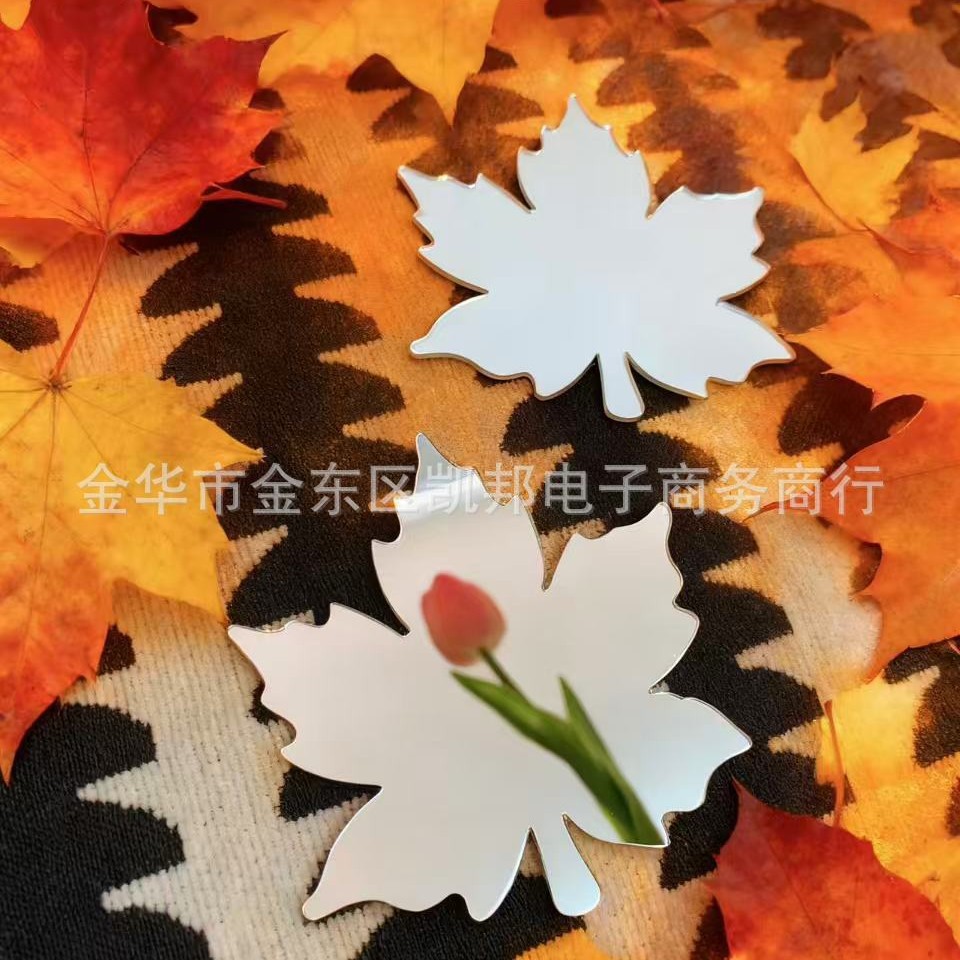 高级ins风女随身便携带手拿小镜子网红补妆手柄镜受持枫叶化妆镜