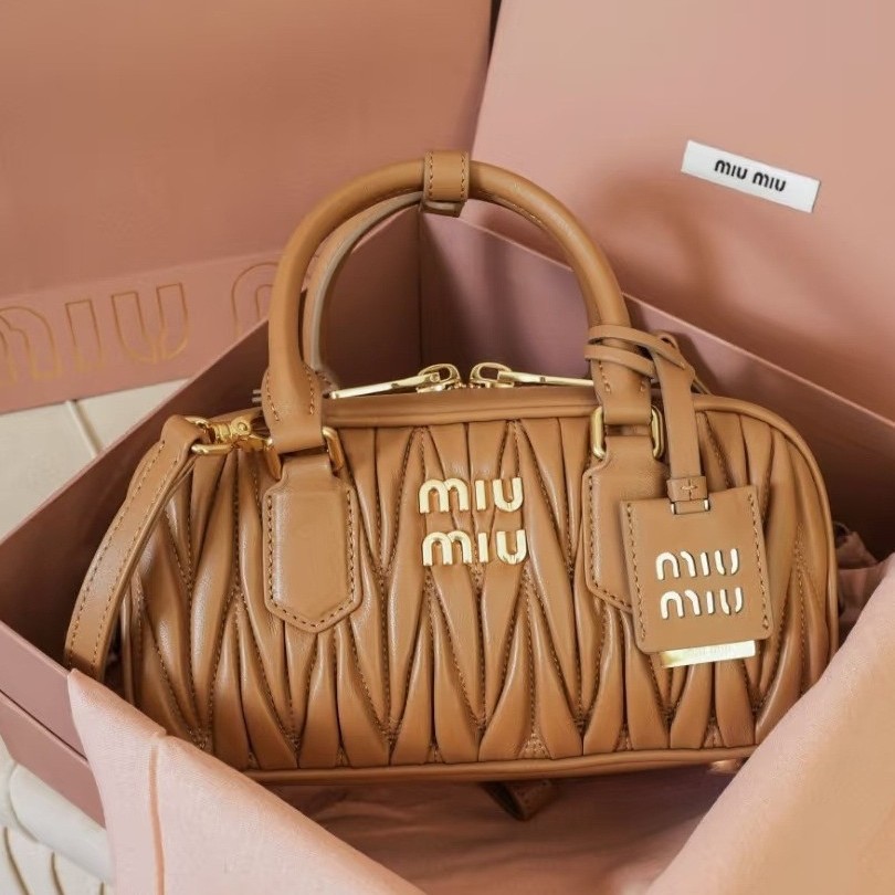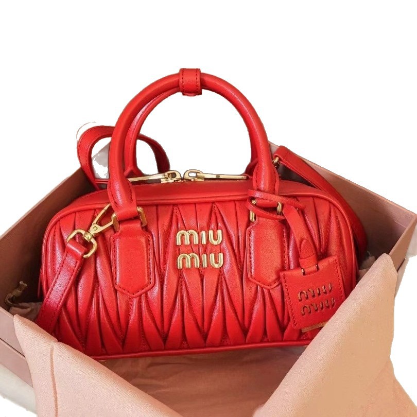 2025miu缪家女包时尚褶皱保龄球包单肩手提斜挎波士顿枕头包手拎