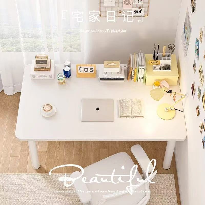 家用电脑桌学习简易书桌写字台桌桌子加高租房卧室办公桌圆角白桌