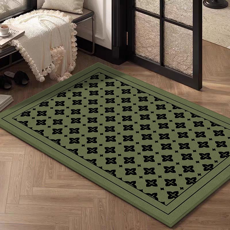 批发古风玄关绿色地垫入户门家用高质感门垫耐脏易打理水晶绒地毯