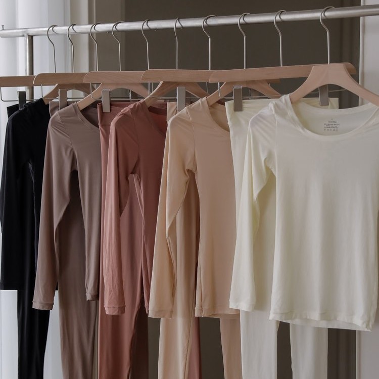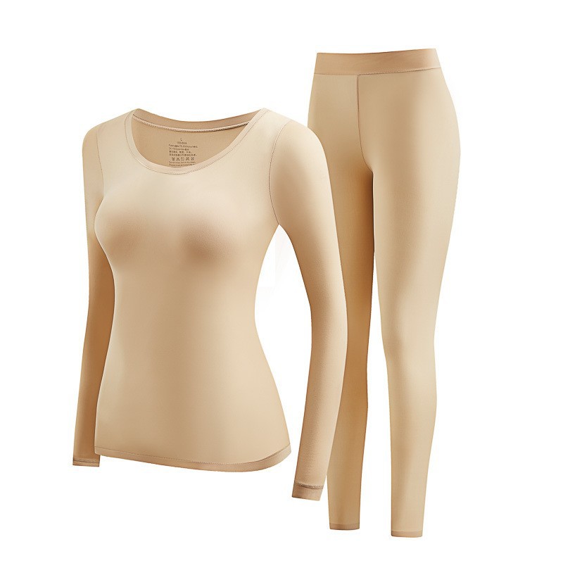 超薄玻色因美肤衣套装 无痕秋衣秋裤保暖内衣 性感圆领高弹肌底衣
