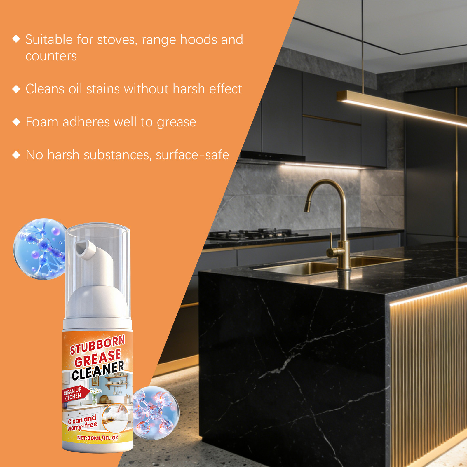 厨房油污泡沫清洁剂 家用厨房灶台油烟机污渍油渍去垢清洁增亮
