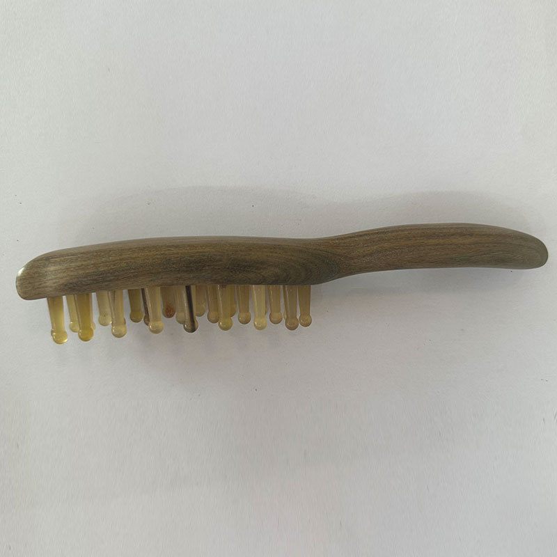 紫光檀绿檀小熊按摩梳头部经络按摩梳头皮舒筋长柄实木木齿梳子