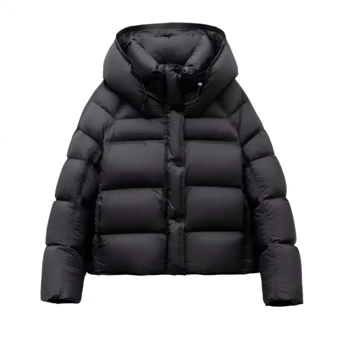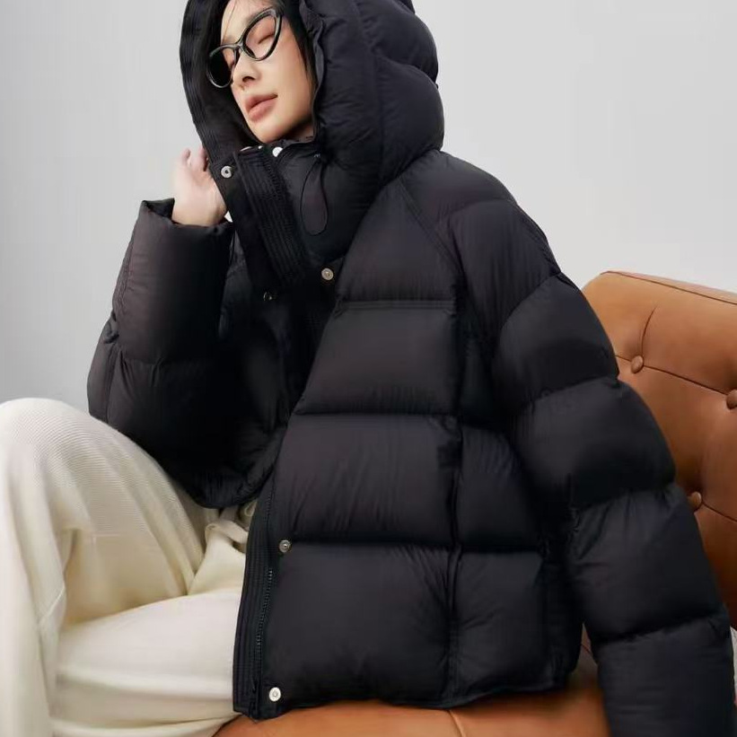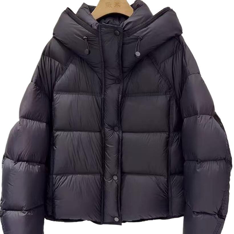 同款2025冬季新款羽绒服休闲气质连帽H米白色黑色