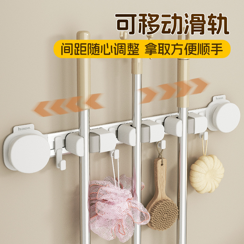 吸盘拖把夹免打孔移动承重浴室厨房卫生间拖把扫把挂墙挂架整理架