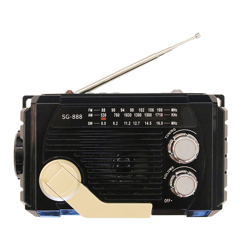 新款便携收音机太阳能手摇发电老年人半导体多波段蓝牙插卡照明灯