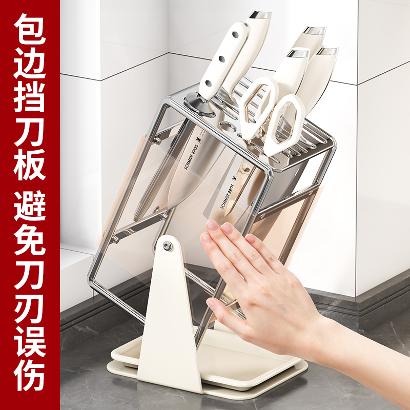 不锈钢旋转刀架厨房多功能刀具沥水置物架家用台面收纳架厂家批发