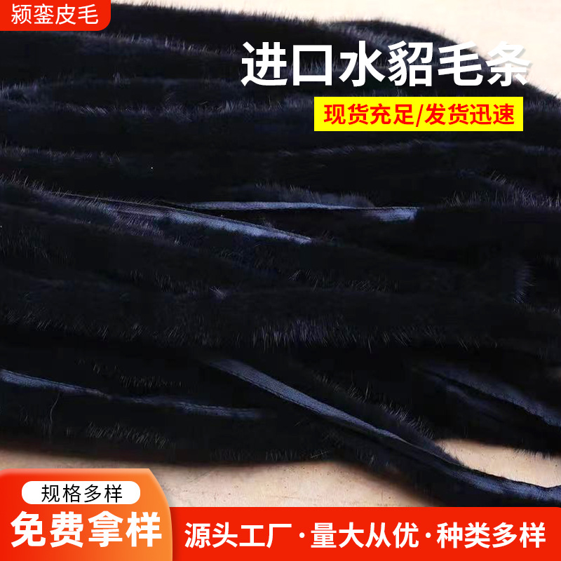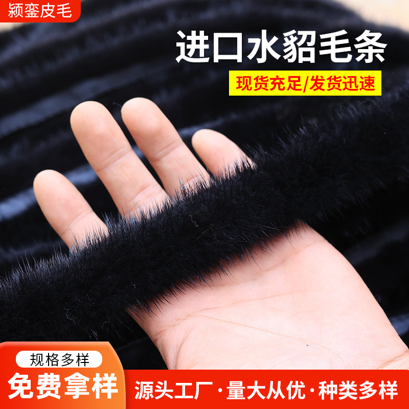 定制黑色水貂毛条辅料旗袍羽绒服滚边复古风香云纱唐装花白色毛边