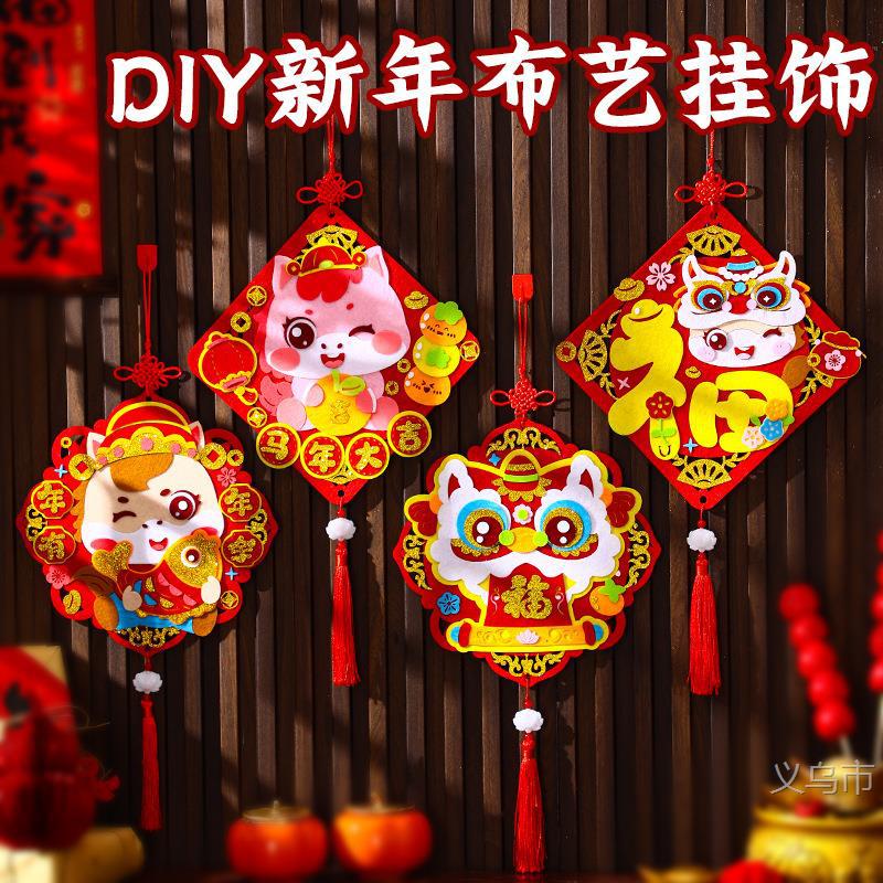 马年新款醒狮挂饰 儿童幼儿园diy手工材料包春节新年装饰益智玩具