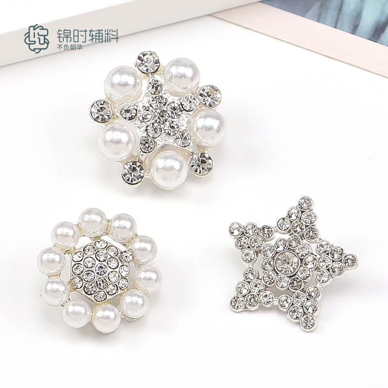 热销金属纽扣小香风珍珠手缝扣DIY服装辅料配饰五角星钻扣