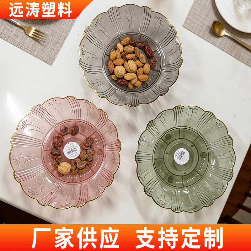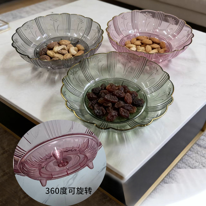 轻奢高级水果盘客厅家用2025新款零食糖干果摆放盘360度旋转果盘