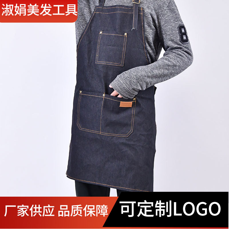 牛仔围裙定制logo咖啡店奶茶超市鲜花店美甲画室水果店美发工作服