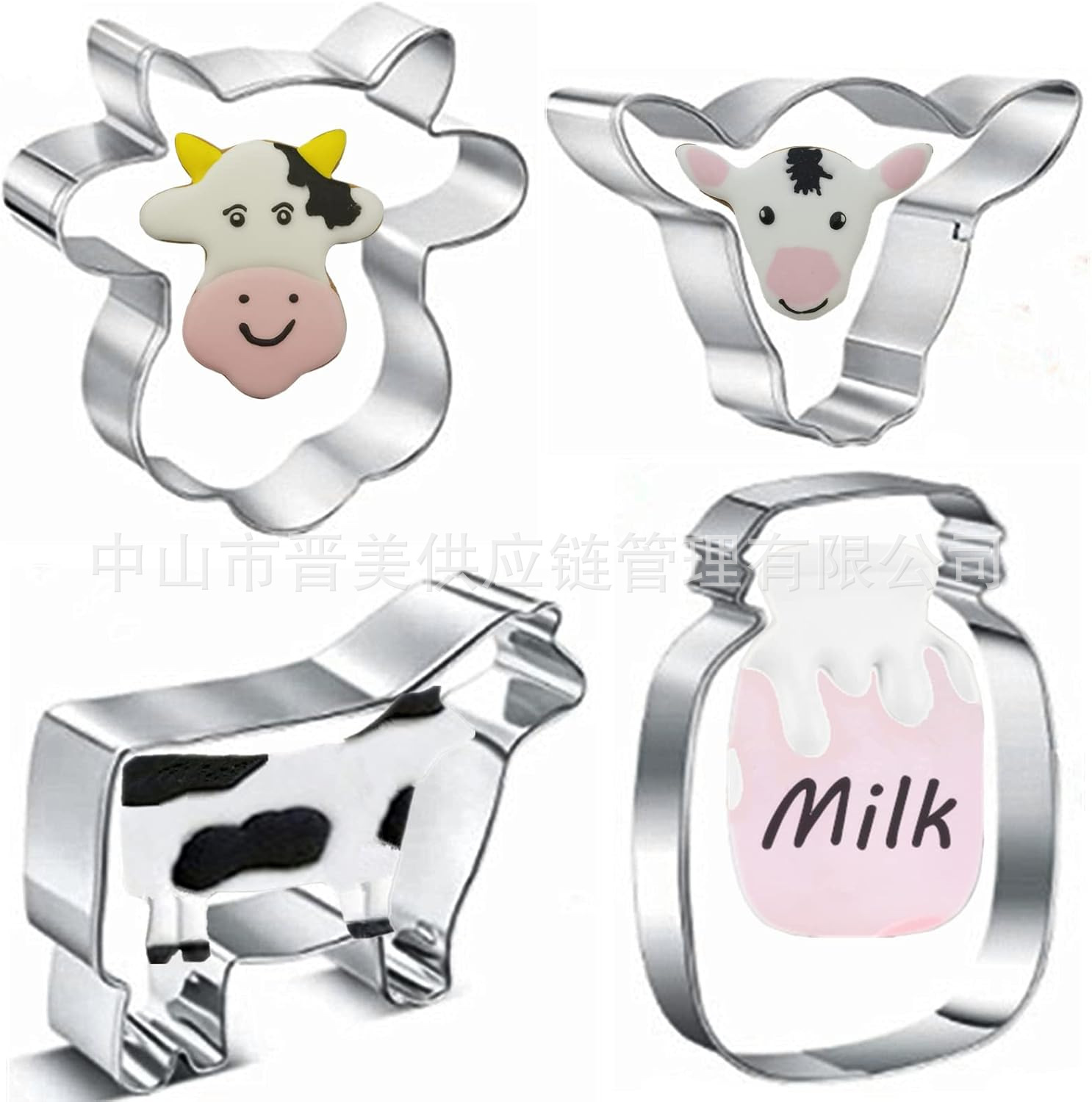 4件套农场牛场不锈钢饼干模具奶牛造型翻糖曲奇切模烘焙工具跨境