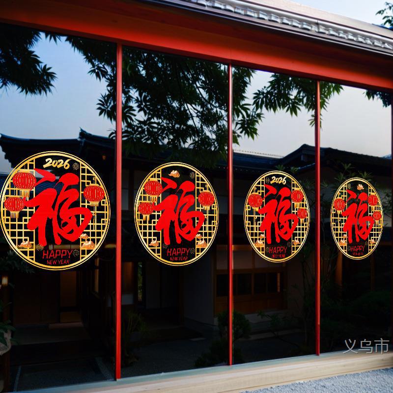 新年快乐马年贺喜灯笼窗花过年布置装扮玻璃门福字静电玻璃贴窗花
