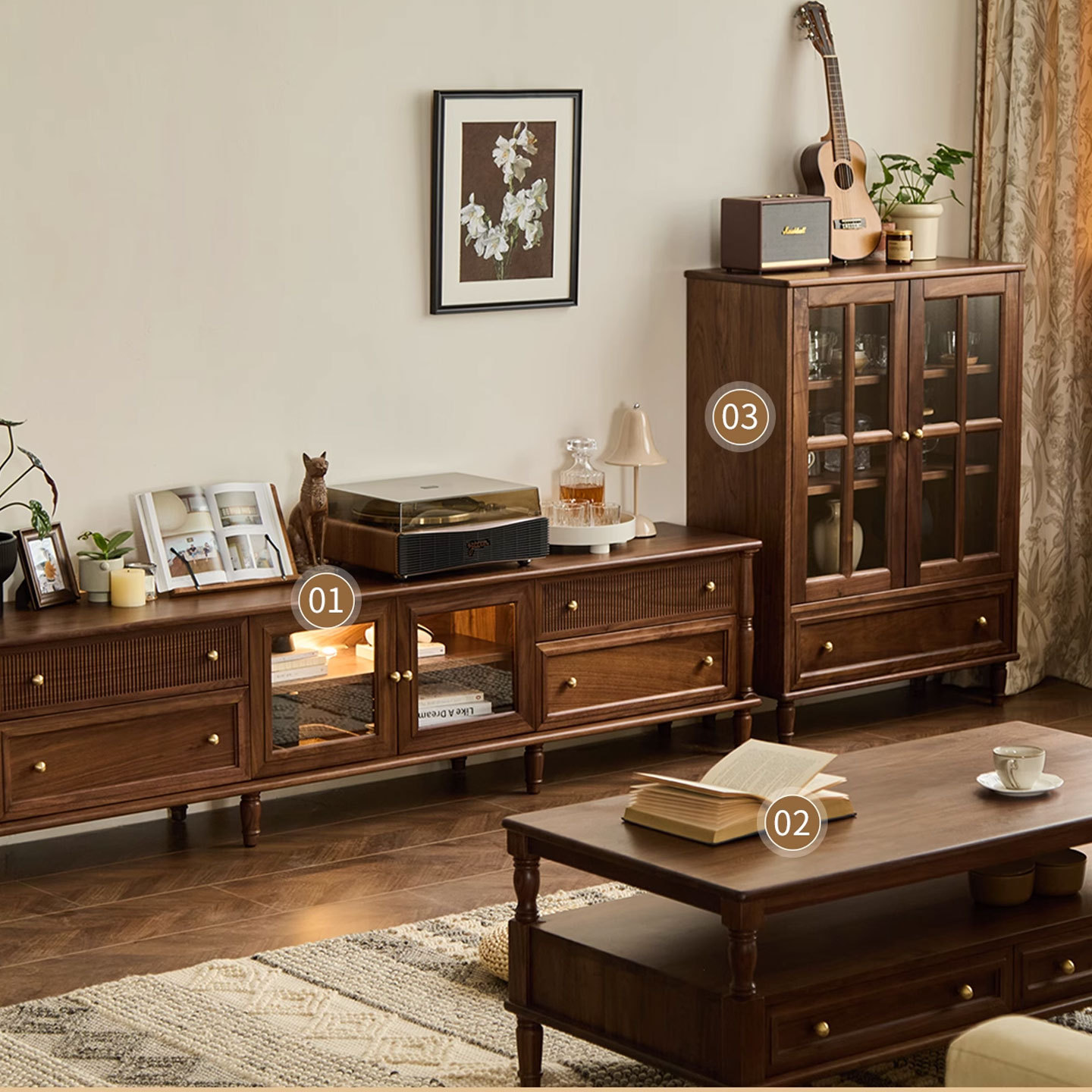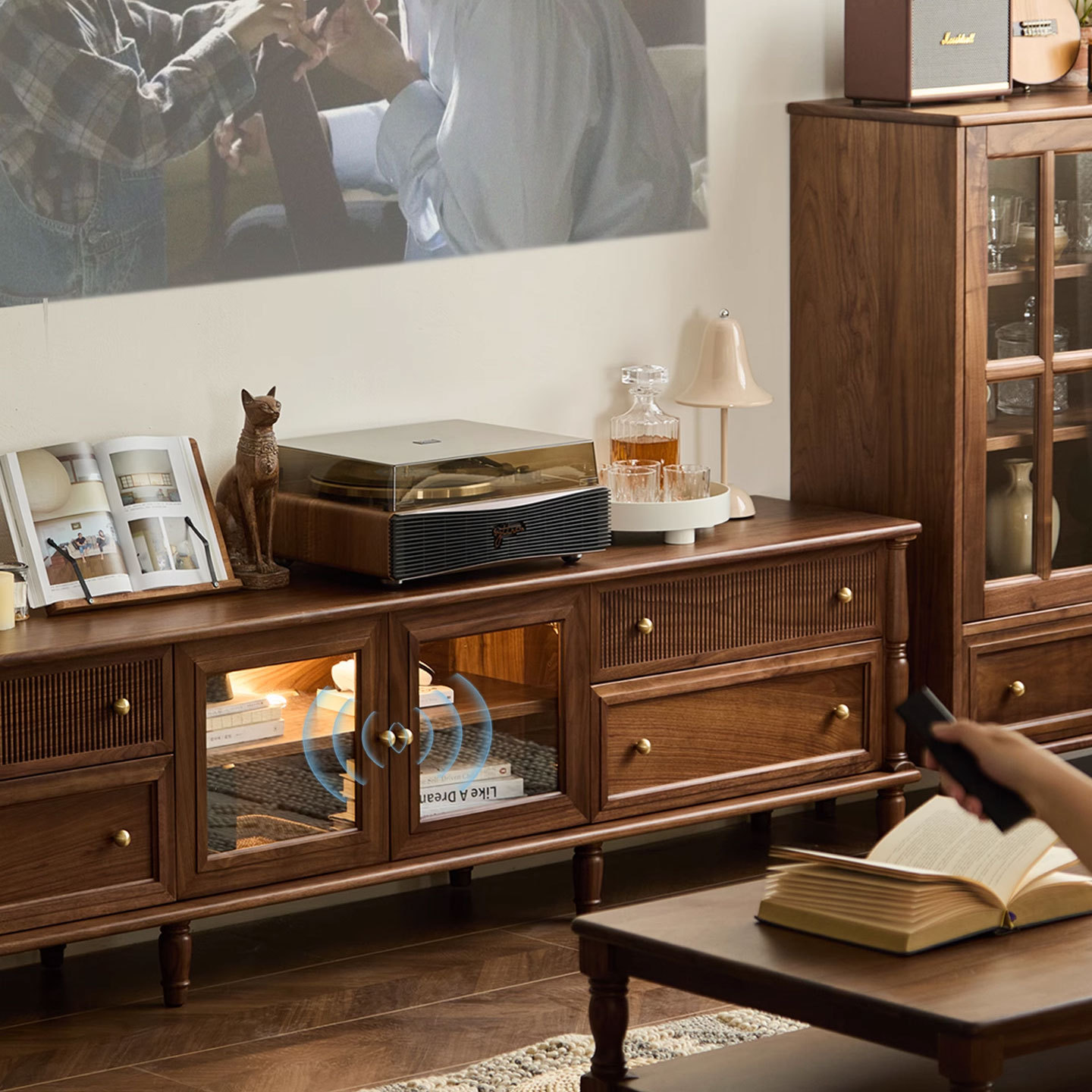 北美黑胡桃木复古电视柜边柜组合北欧实木樱桃木小户型中古储物柜