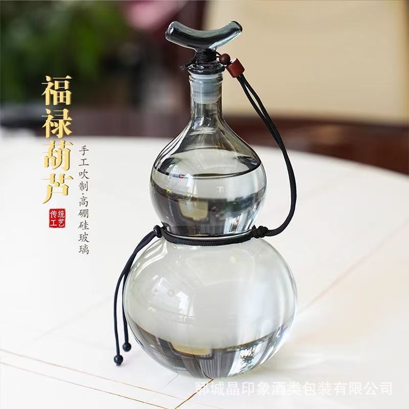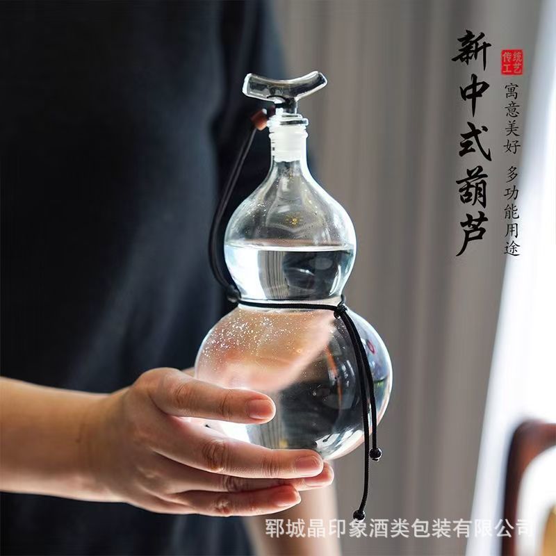 葫芦酒瓶透明玻璃白酒瓶创意一斤装果汁饮料泡酒瓶分酒器便携酒瓶