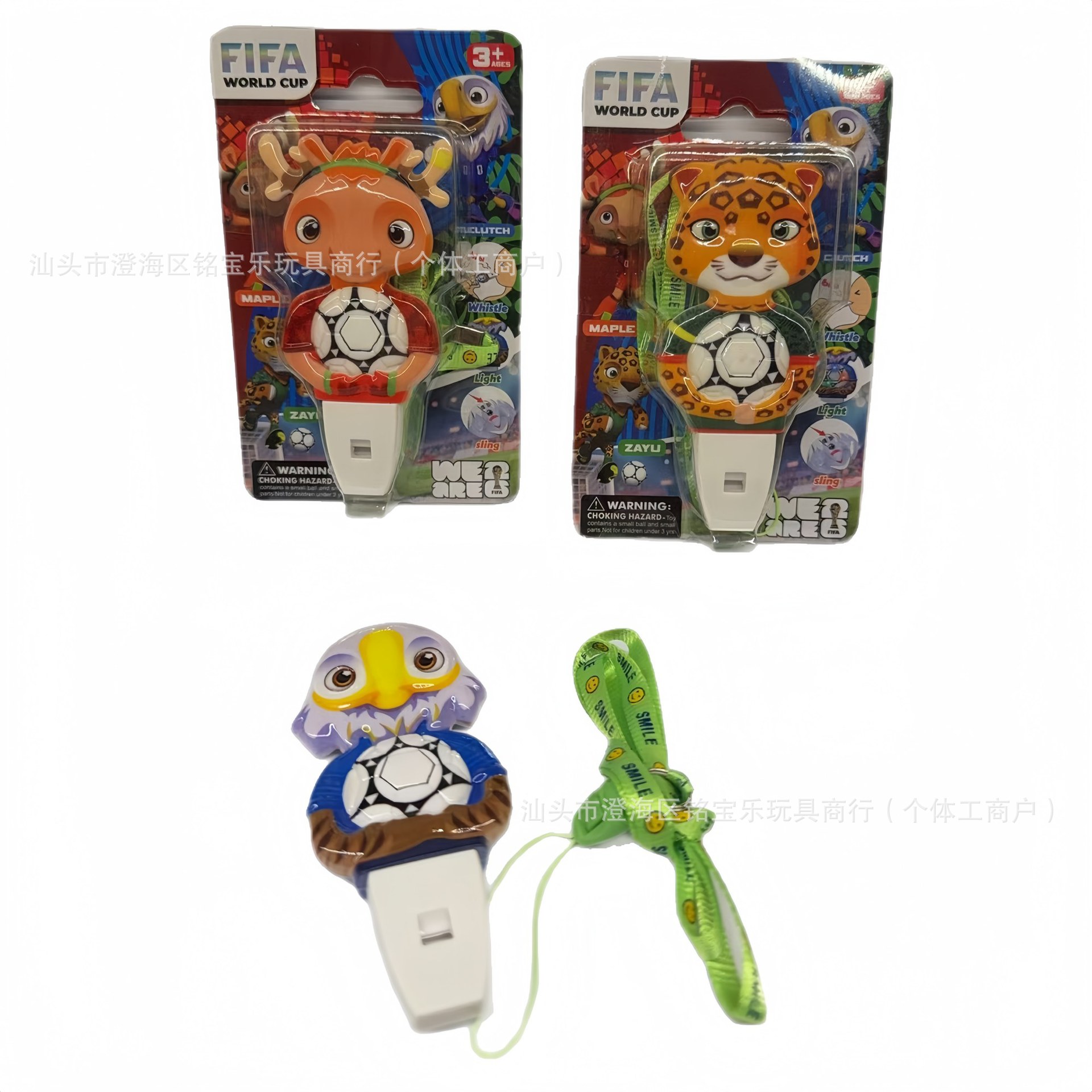| 是否专供外贸 | 是(本商品仅供外贸用途,可能不符合境内产品标准。请境内买家谨慎购入) | 颜色 | 吉祥物闪光口哨(板装)三款混装/箱720板MBL001625 |
