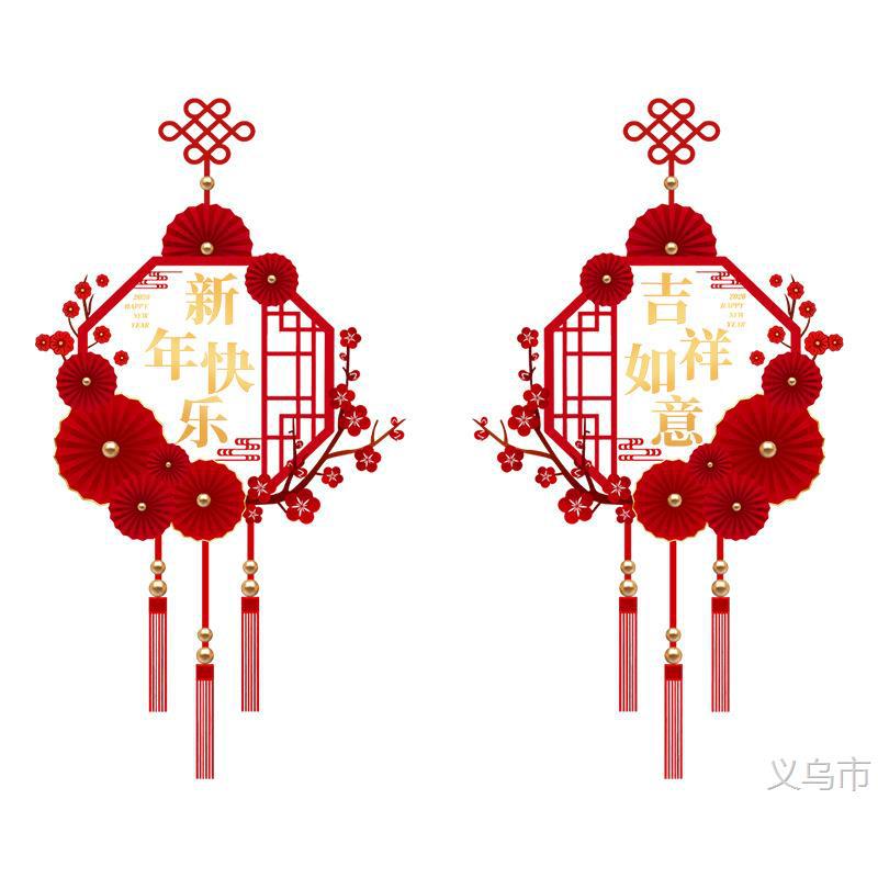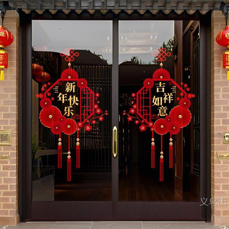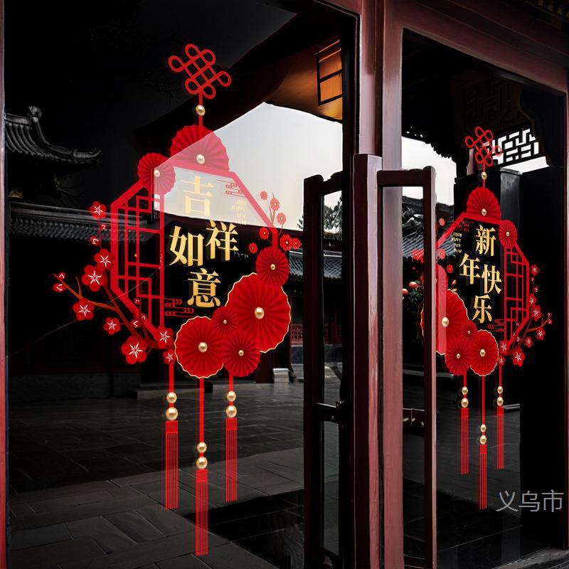 新年快乐马年灯笼窗花过年布置装扮玻璃门吉祥如意静电玻璃贴窗花