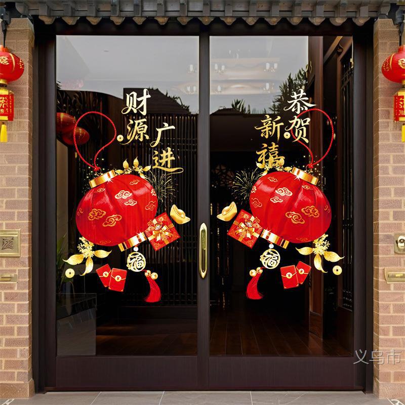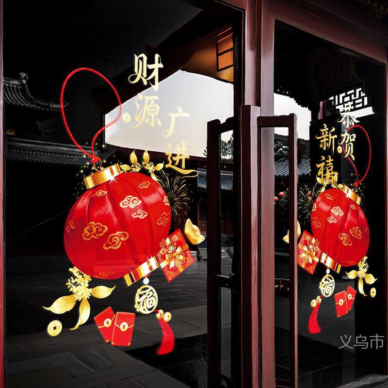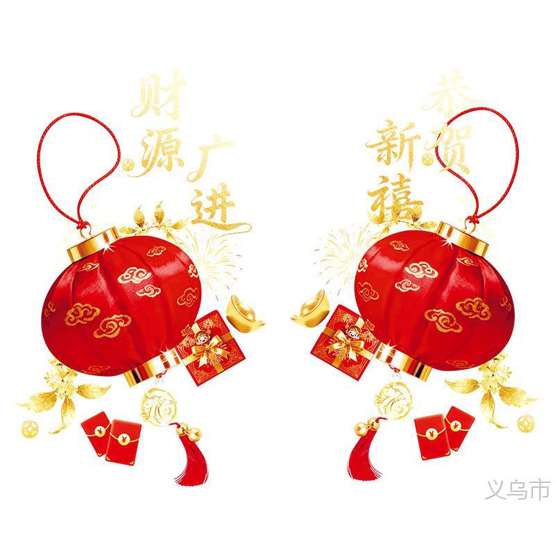 新年马年灯笼窗花过年财源广进布置装扮玻璃门静电玻璃贴新春窗花