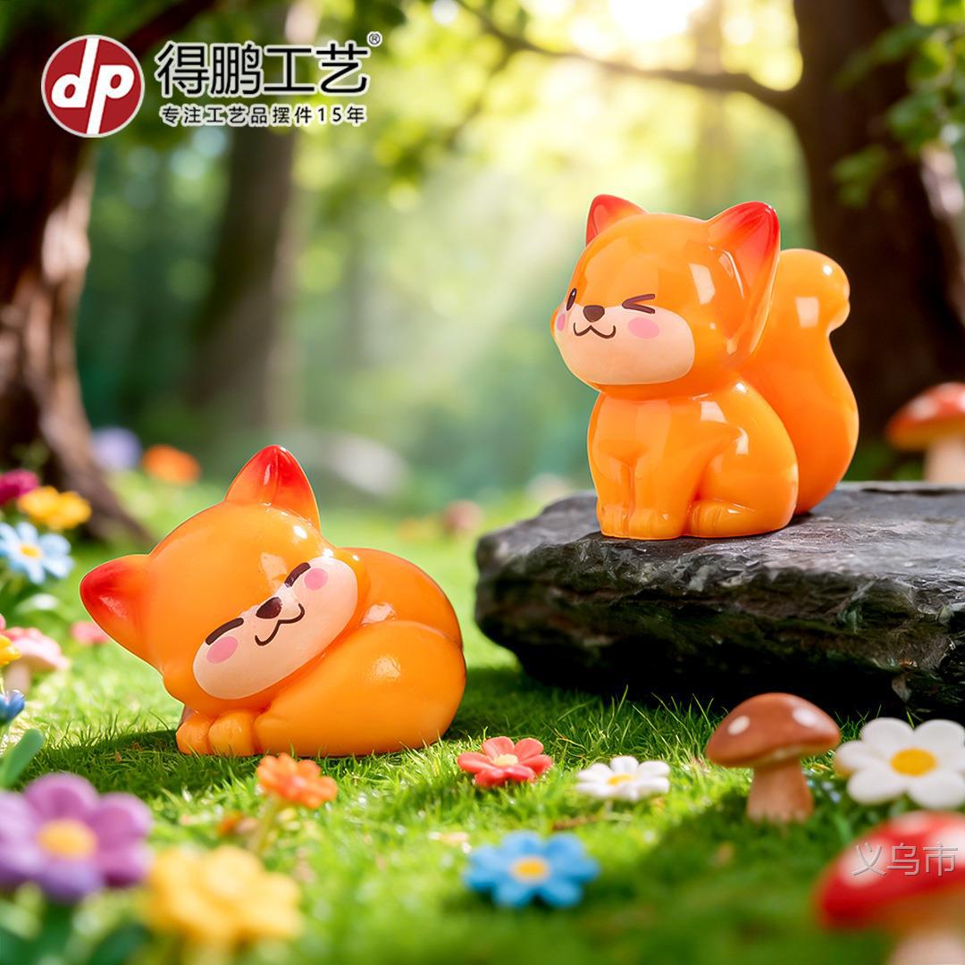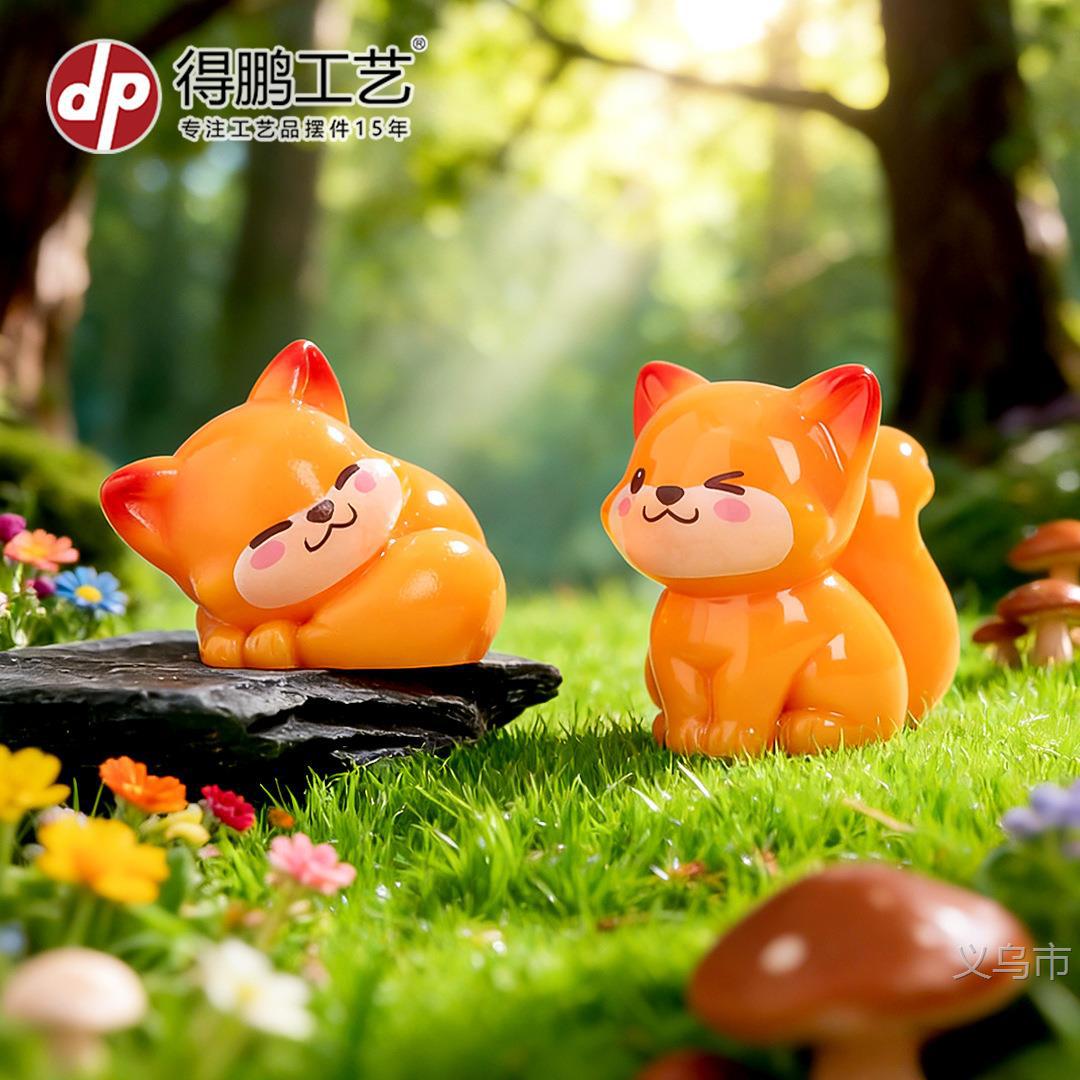 微景观摆件卡通可爱小狐狸公仔 diy树脂工艺品桌面汽车迷你小摆件