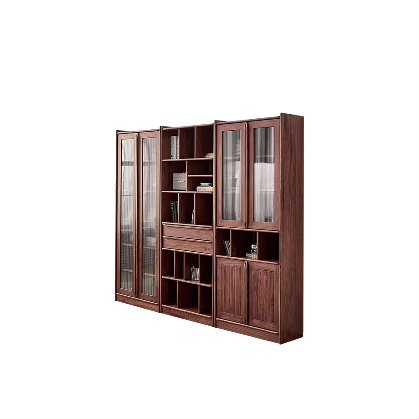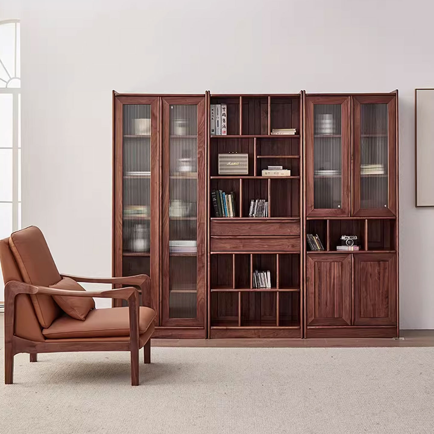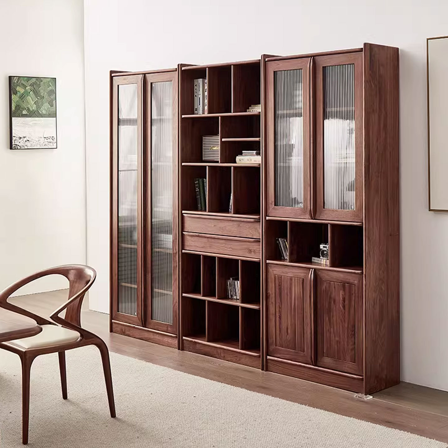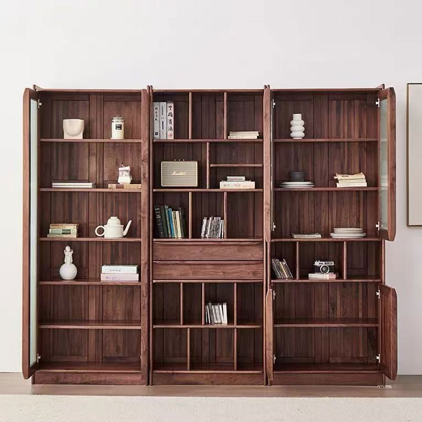 北欧黑胡桃木组合书柜全实木现代简约展示柜书橱书房玻璃门储物柜