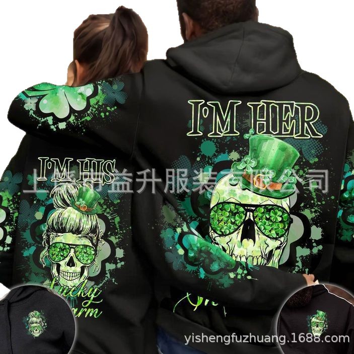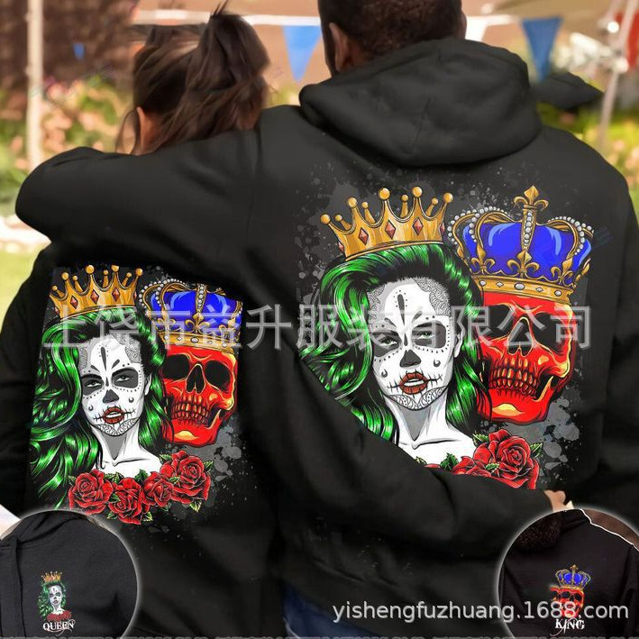 2025秋季新款亚马逊欧美外贸跨境卫衣情侣休闲骷髅3D数码印花卫衣