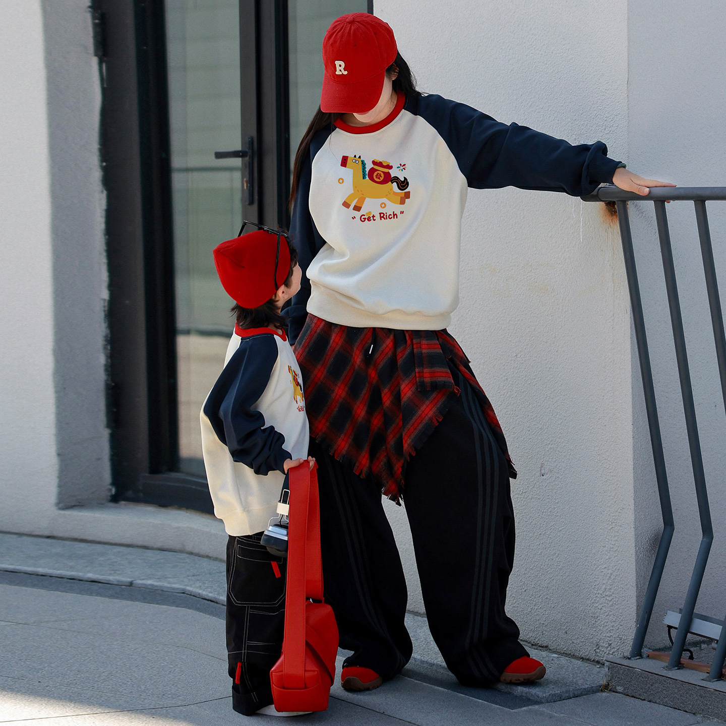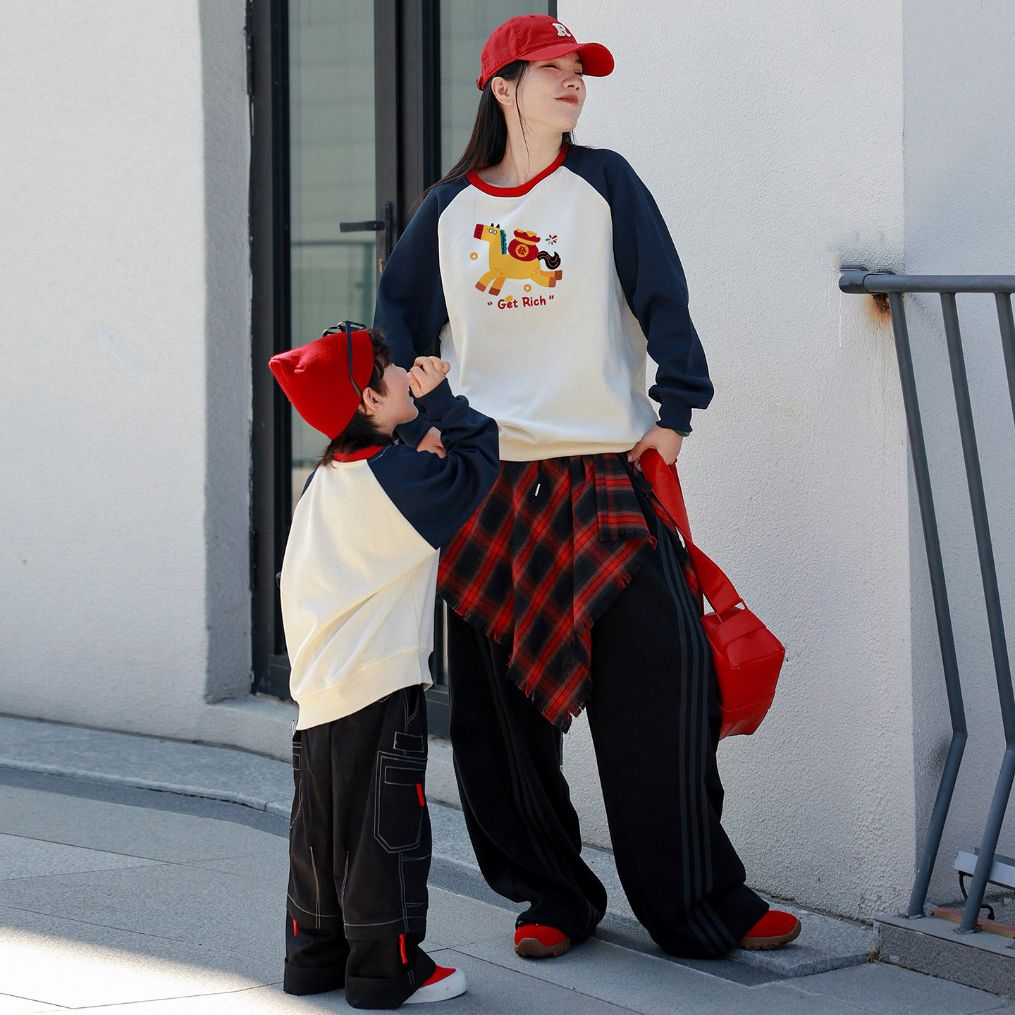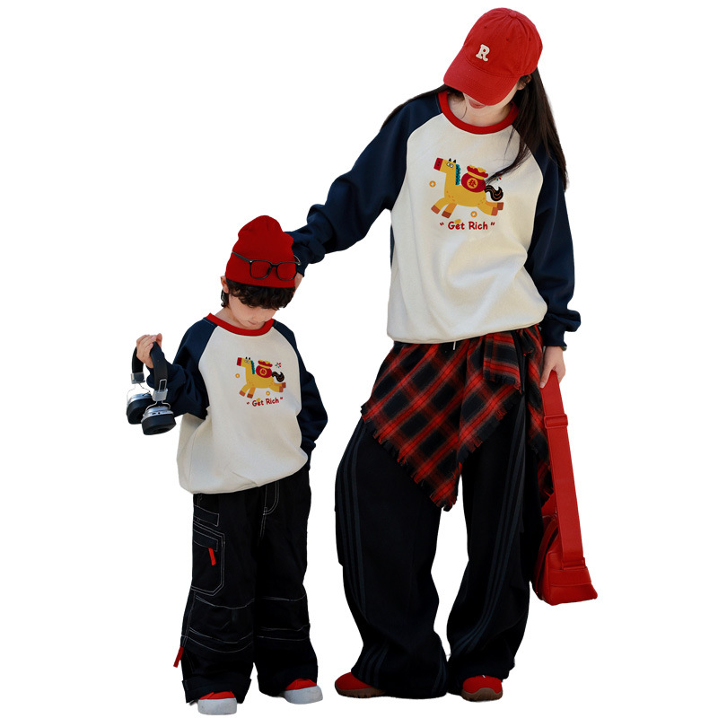 小马亲子装春秋新款休闲卡通卫衣柔软透气一家三口家庭装拜年服