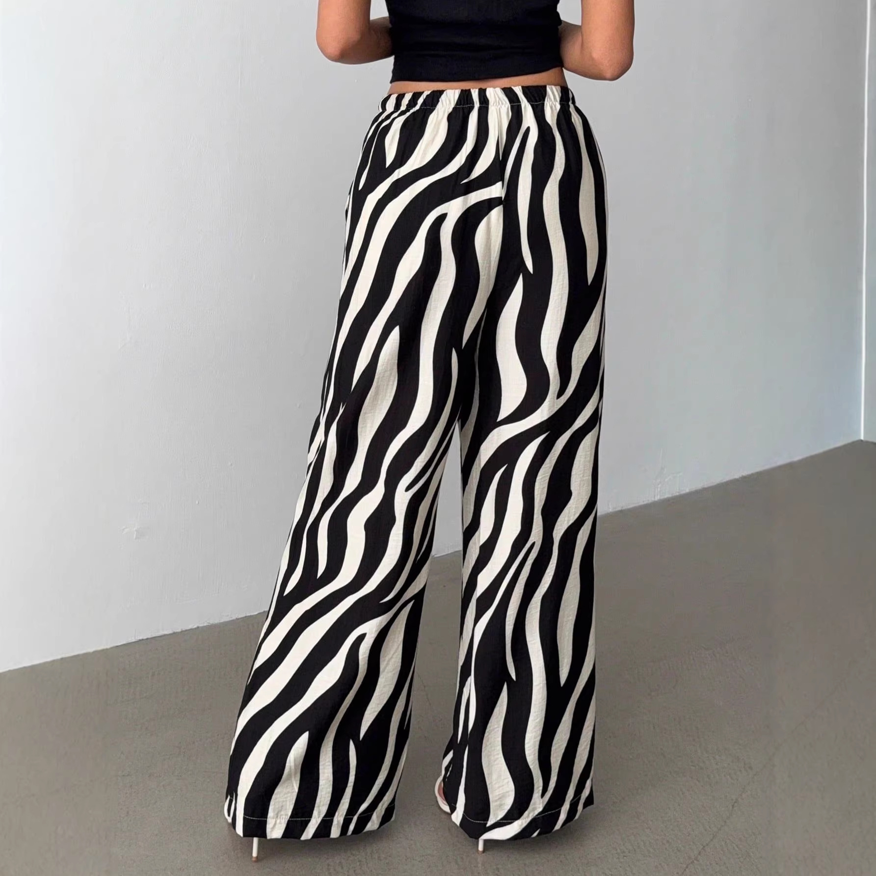 跨境欧美新款女装时尚气质印花阔腿裤女外贸亚马逊temu250316