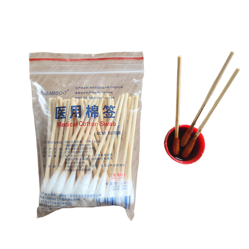 现货单头竹木棒棉签一次性伤口消毒医用棉签掏耳朵棉签规格齐全