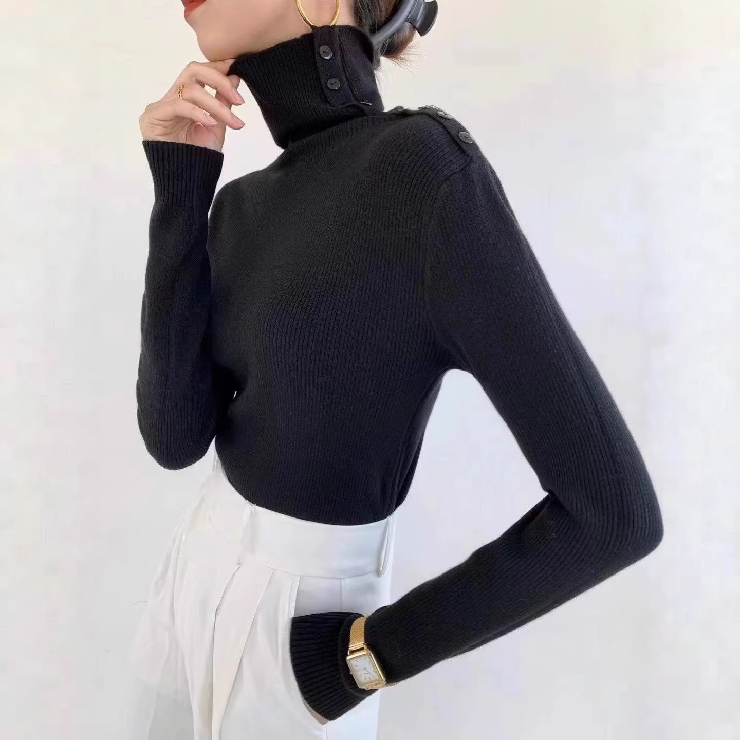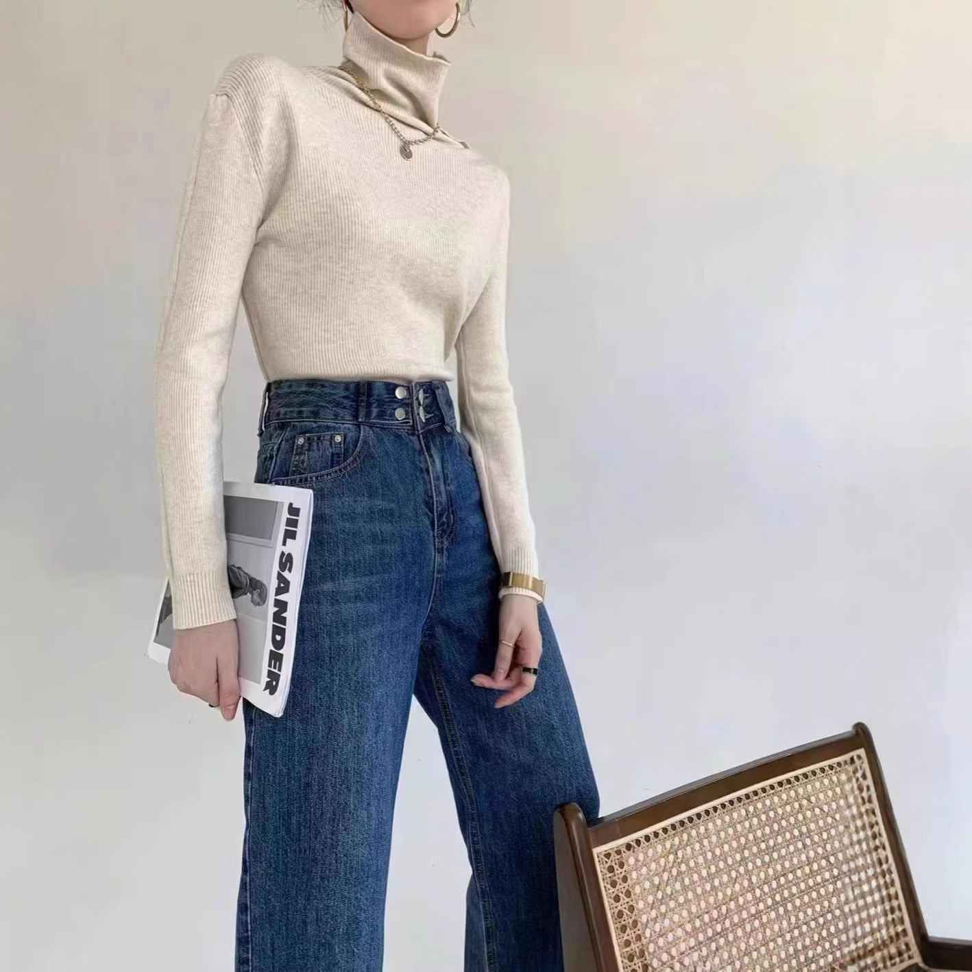 包芯纱面料 堆堆领针织衫毛衣女秋冬内搭大衣打底衫上衣2025新款
