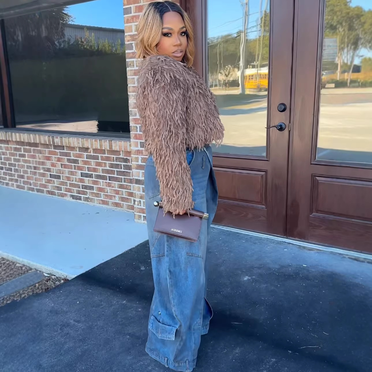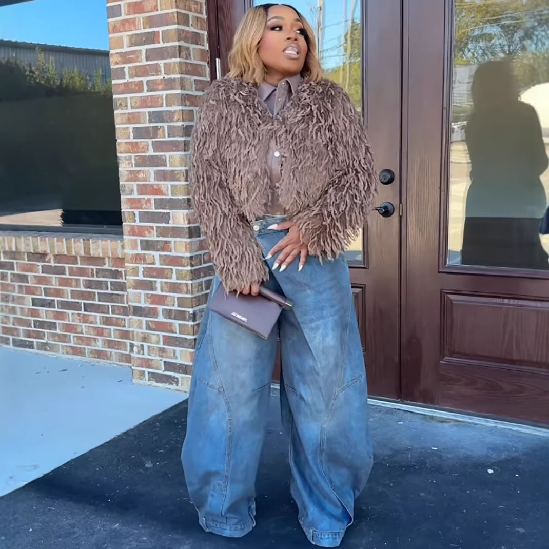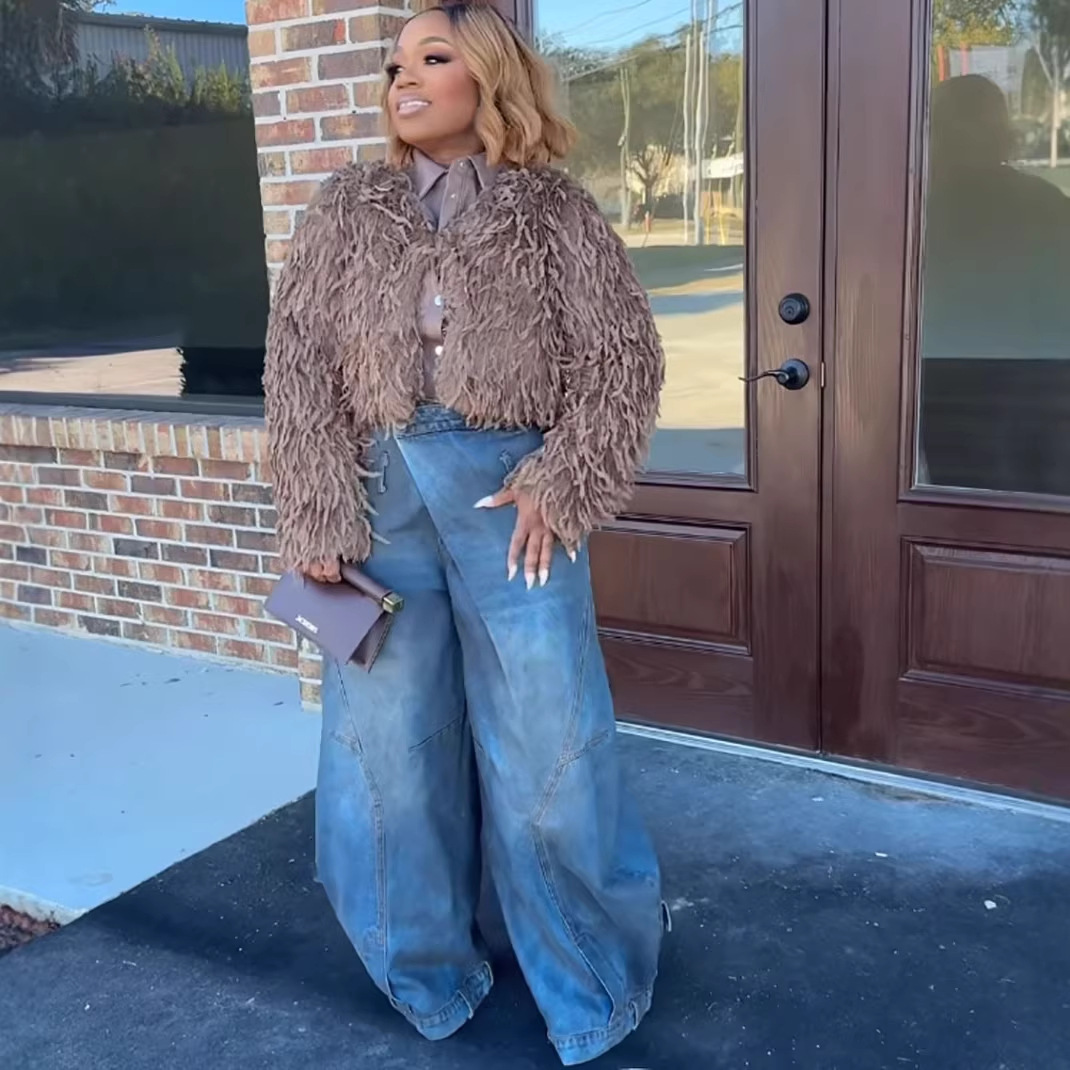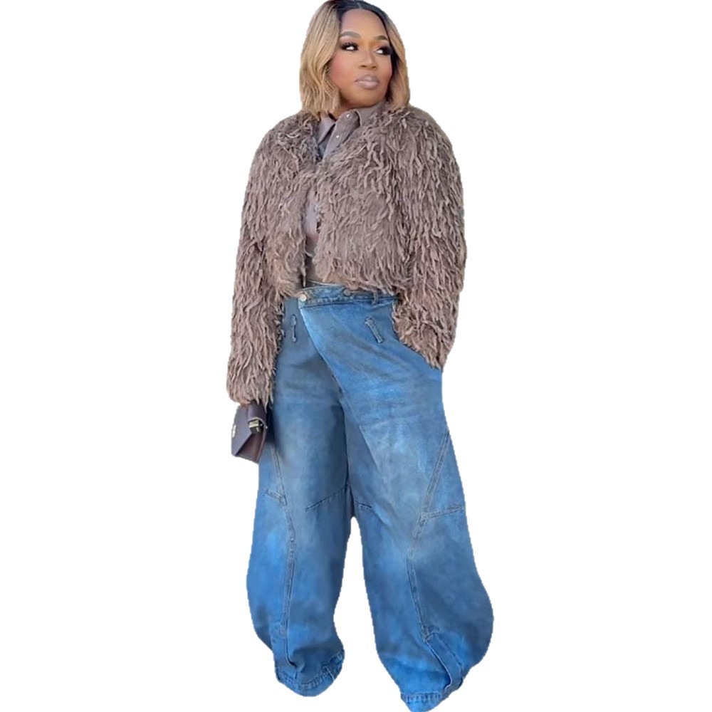 欧美女式阔腿牛仔裤亚马逊跨境女装时尚复古做旧水洗反穿直筒长裤