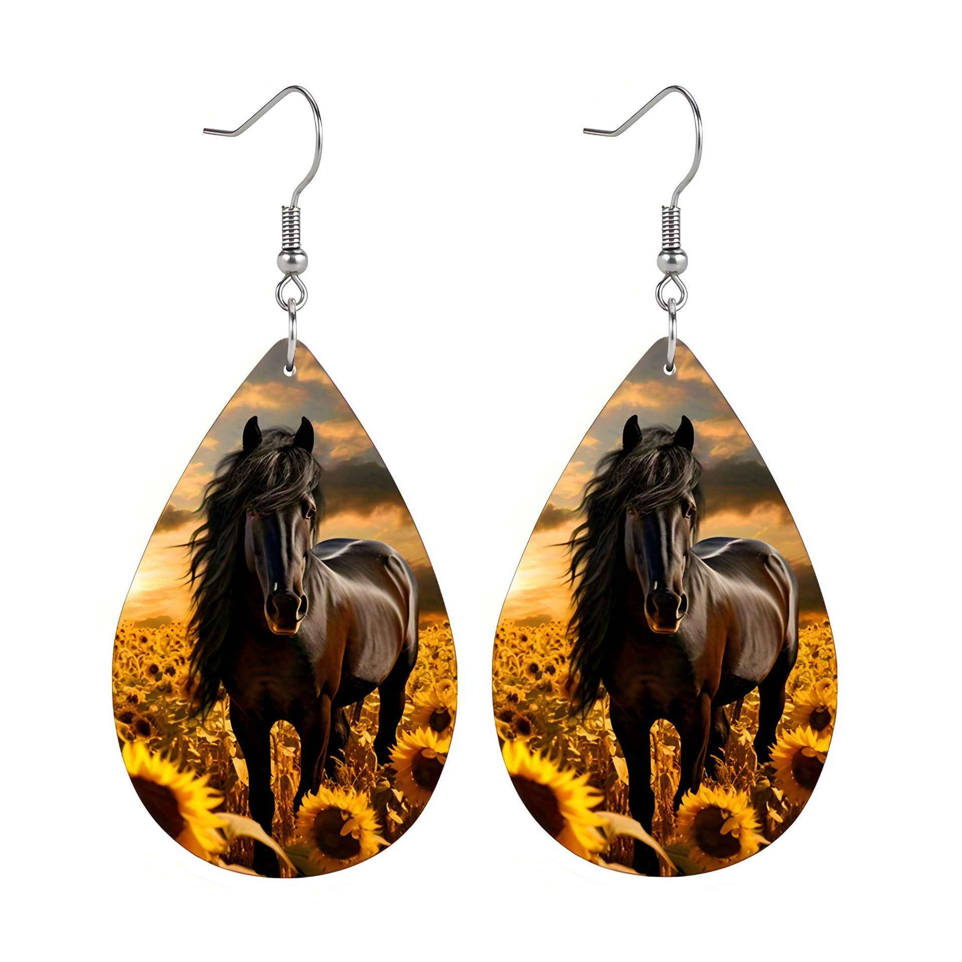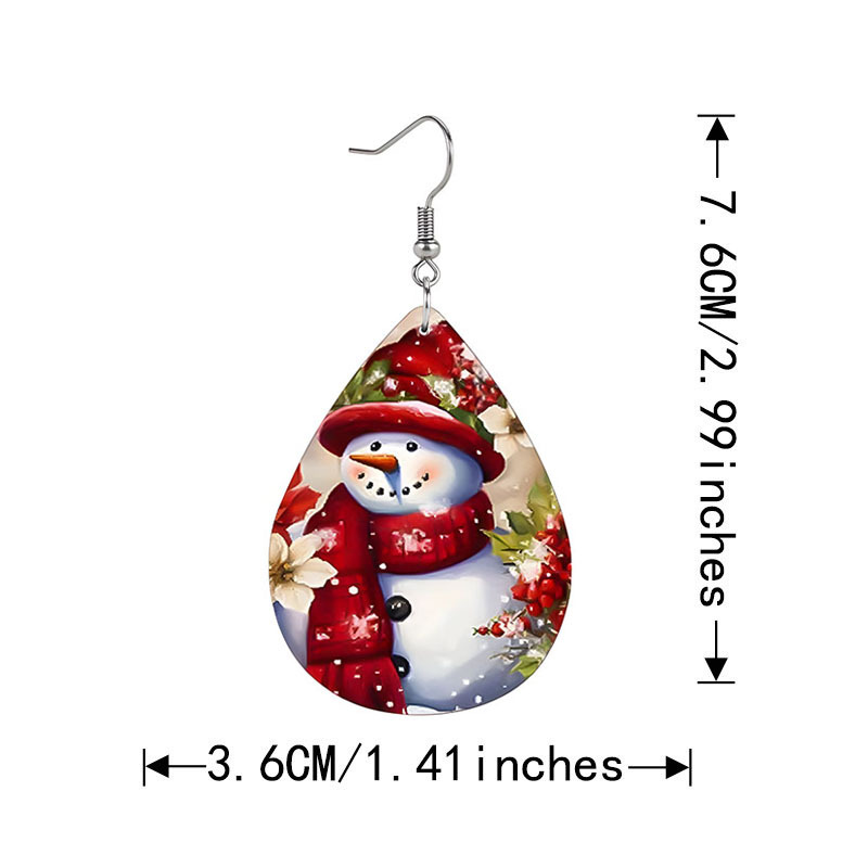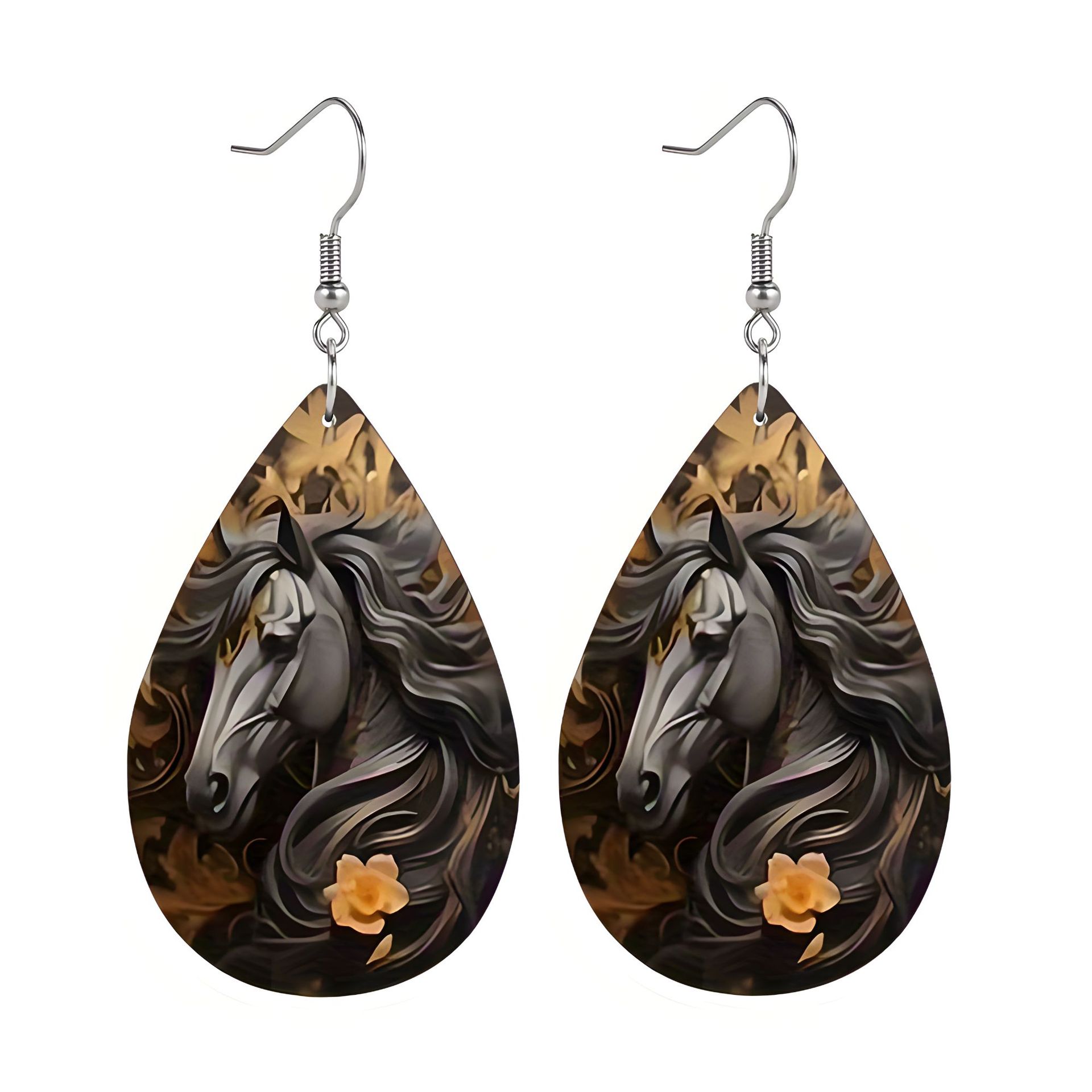 跨境新款个性时尚拼色立体图案水滴形双面pu皮革印花耳坠耳环可定