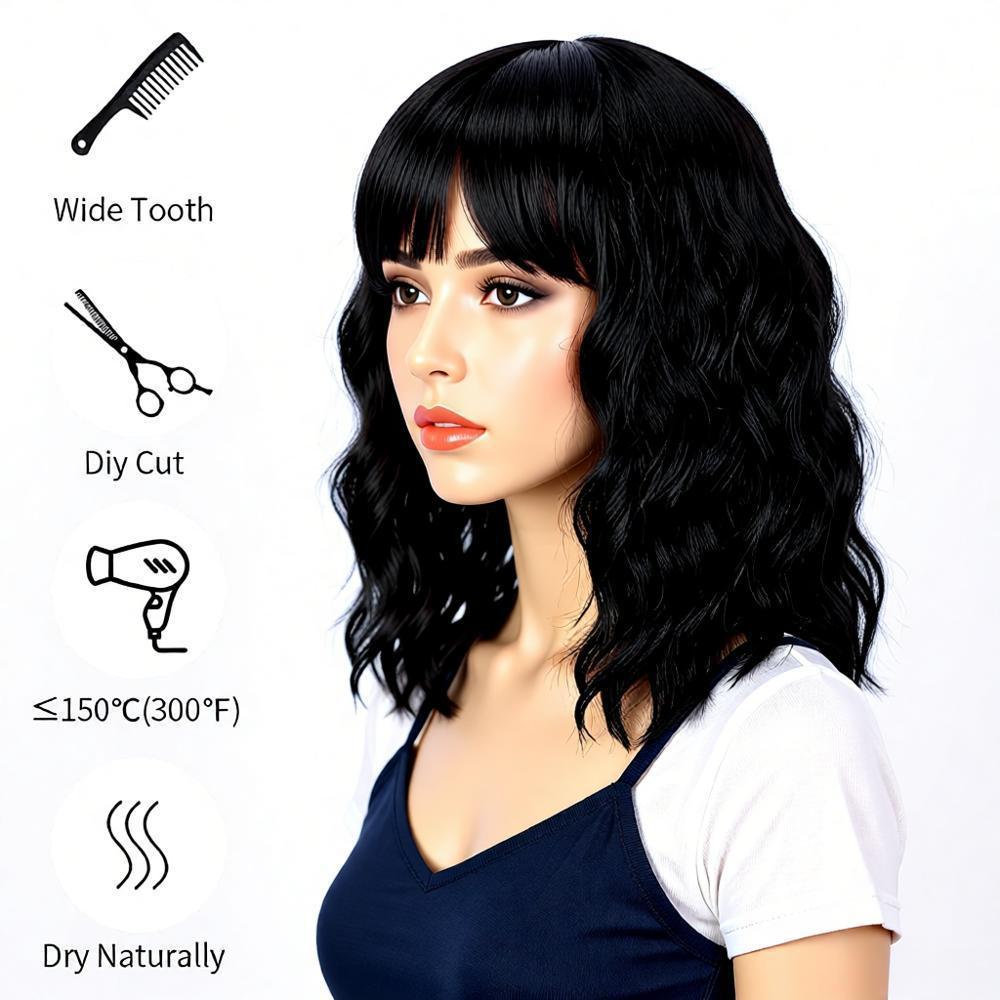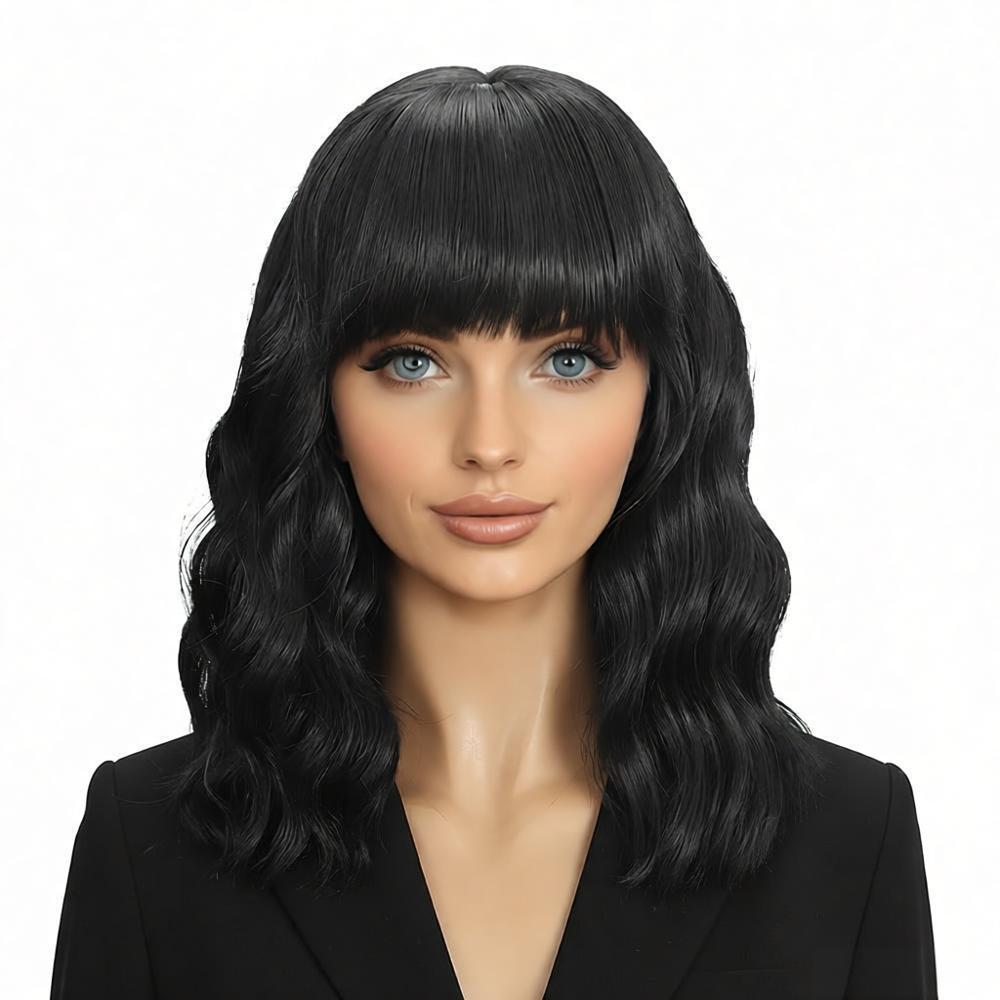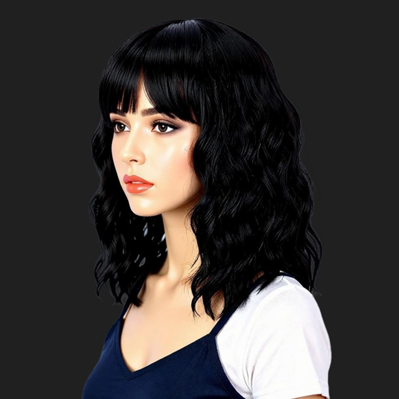 齐刘海中长款卷发假发女士玉米烫卷毛中长发齐肩长发全头套假毛
