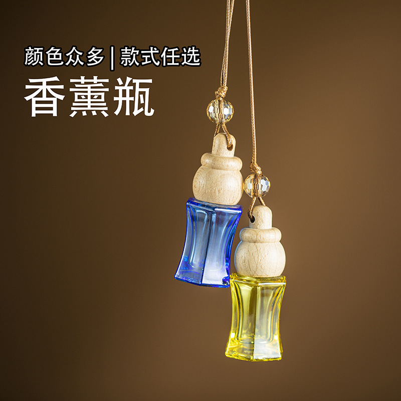 车载香薰瓶彩色玻璃车内饰挂件带绳密封香水瓶扩香小容量容器瓶子