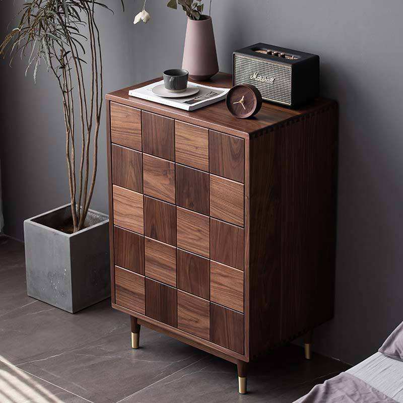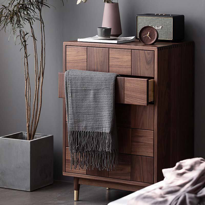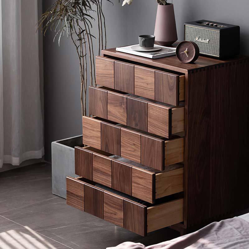 全实木五斗柜北欧黑胡桃木卧室五斗橱现代简约轻奢客厅储物收纳柜