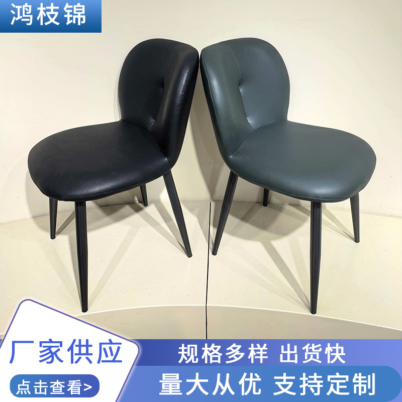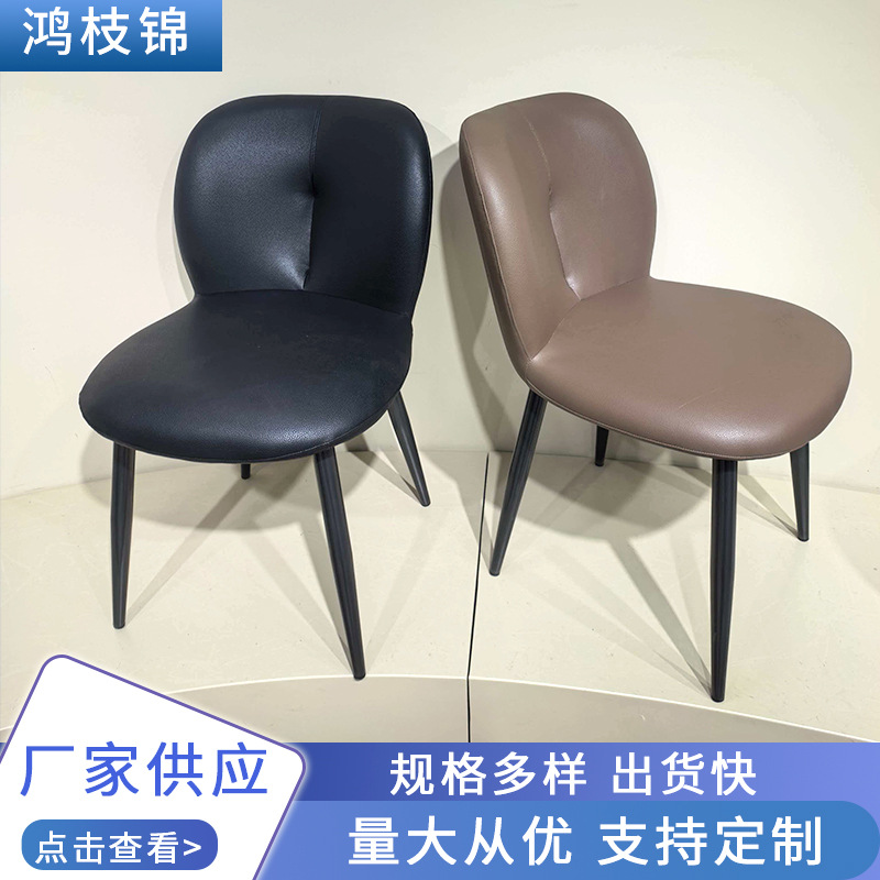 家用餐椅荔枝纹猫抓皮现代简约轻奢餐椅客厅靠背椅皮革金属餐厅椅