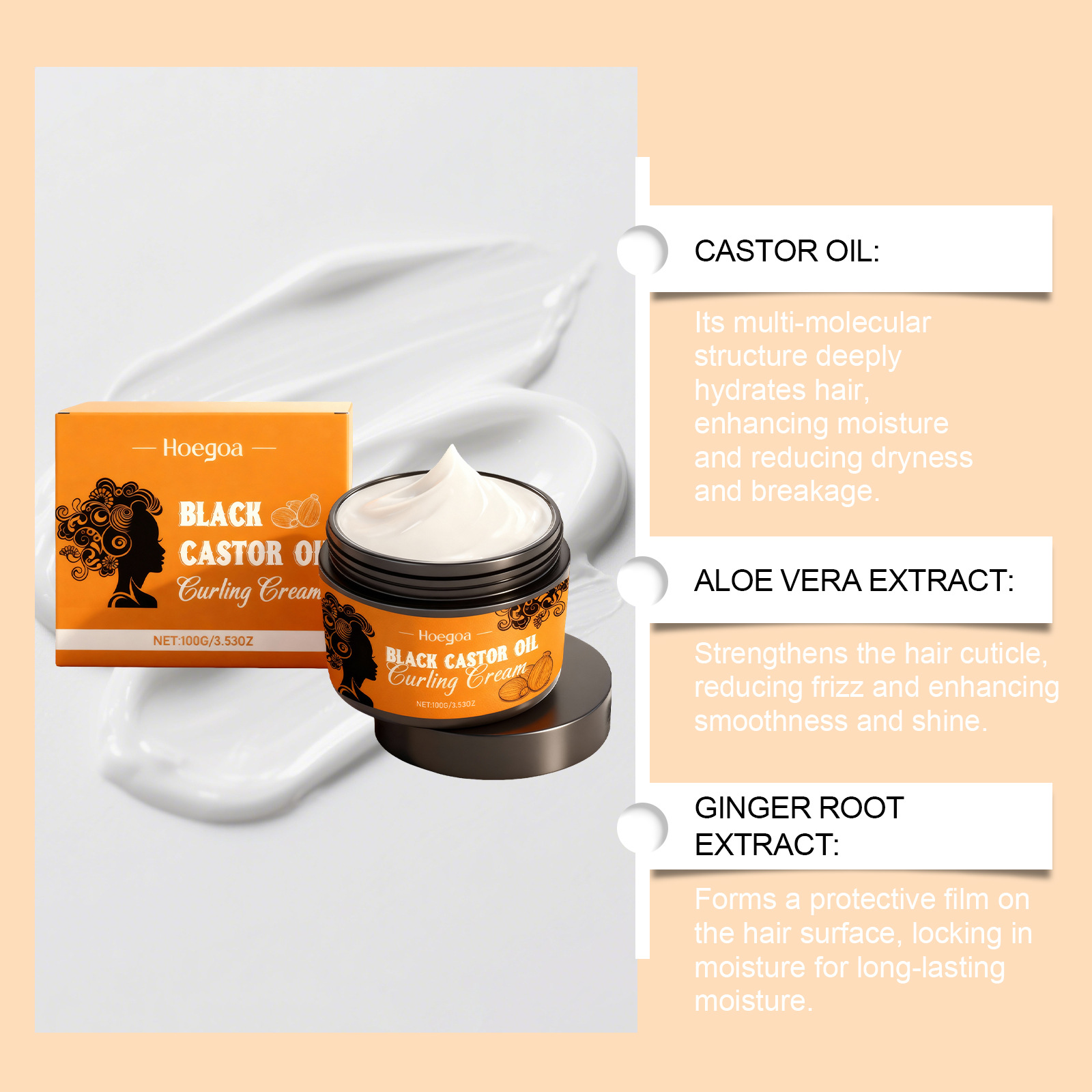 HOEGOA 卷发定型霜 打造自然卷发轻盈秀发亮泽头发定型霜