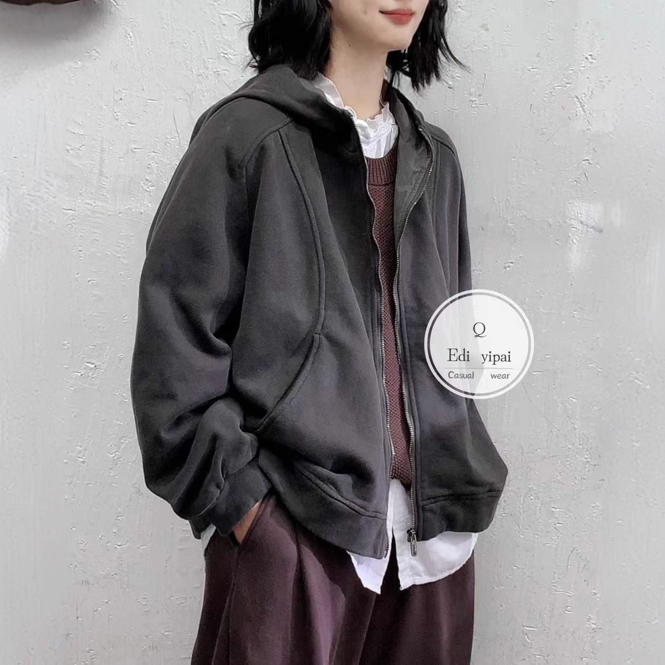 ed33046雪花绒加厚帽款拉链卫衣外套2026早春新品慵懒风气质百搭