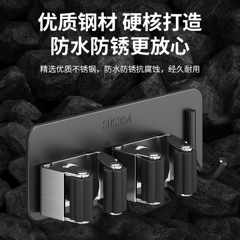 拖把挂钩挂架免打孔壁挂卫生间拖布收纳架粘胶强力固定卡扣扫把夹