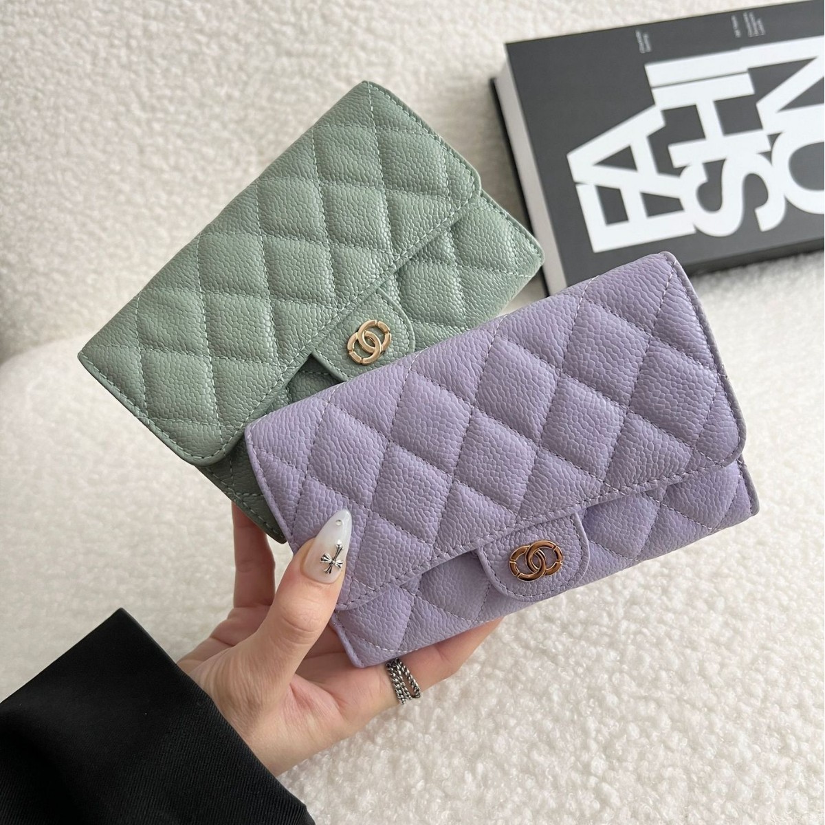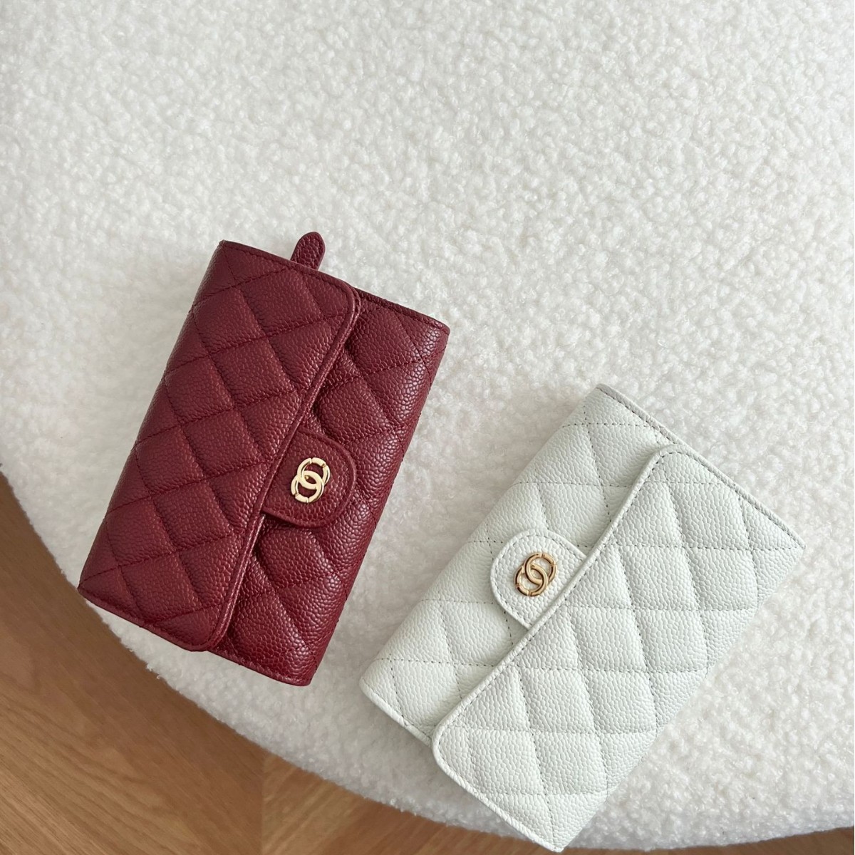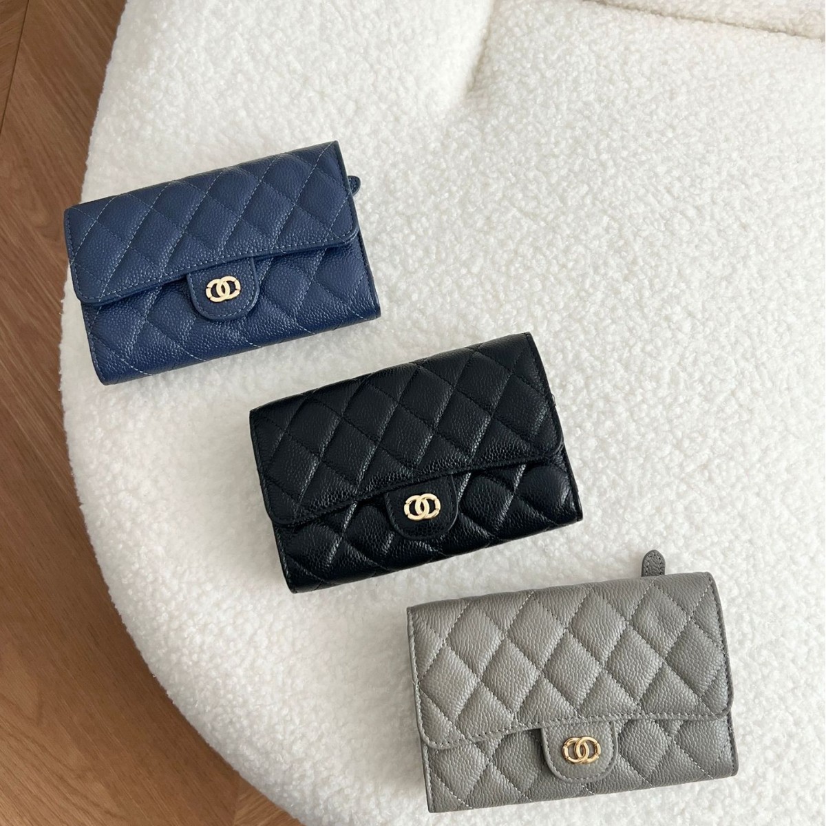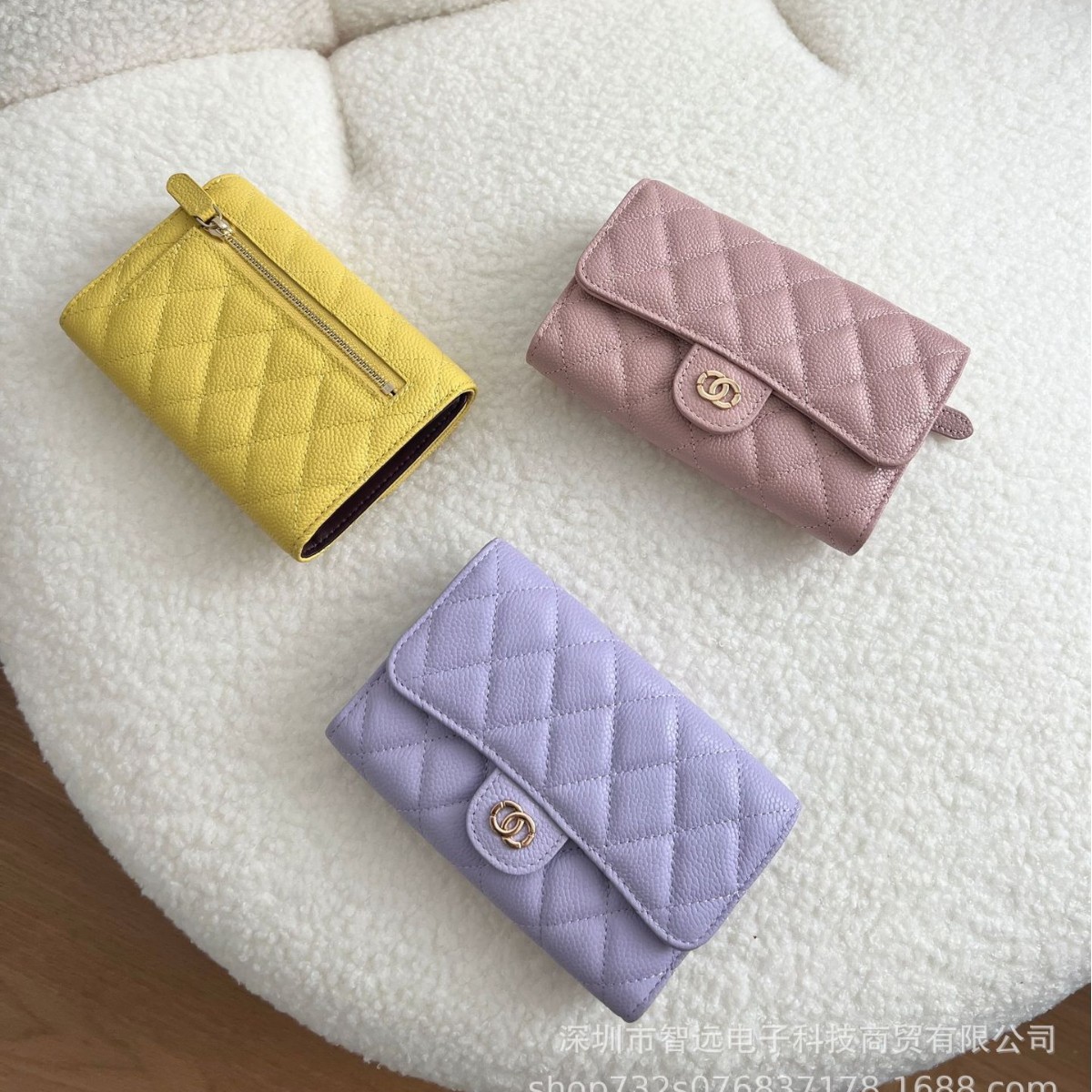 小香风钱包女士鱼子酱牛皮钱夹中长款三折真皮钱夹小巧菱格零钱包