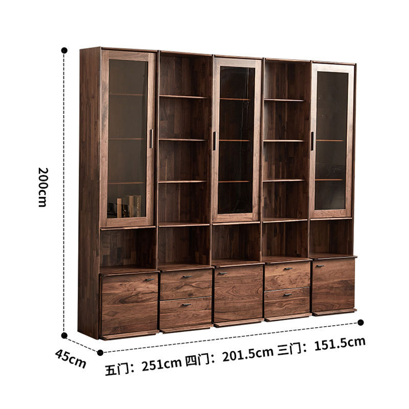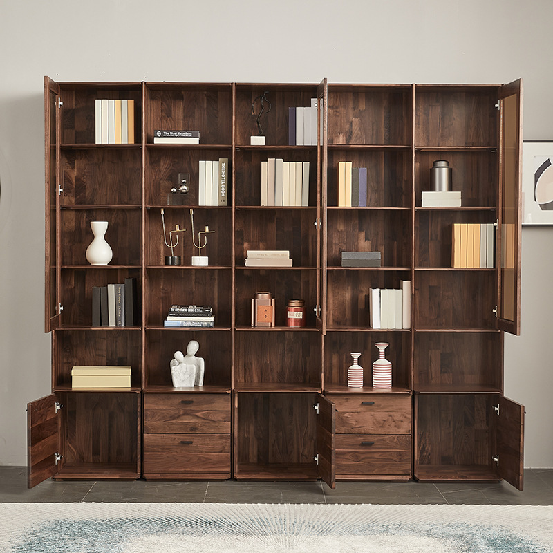 北美黑胡桃木全实木书柜现代简约樱桃木原木客厅书房储物收纳书柜
