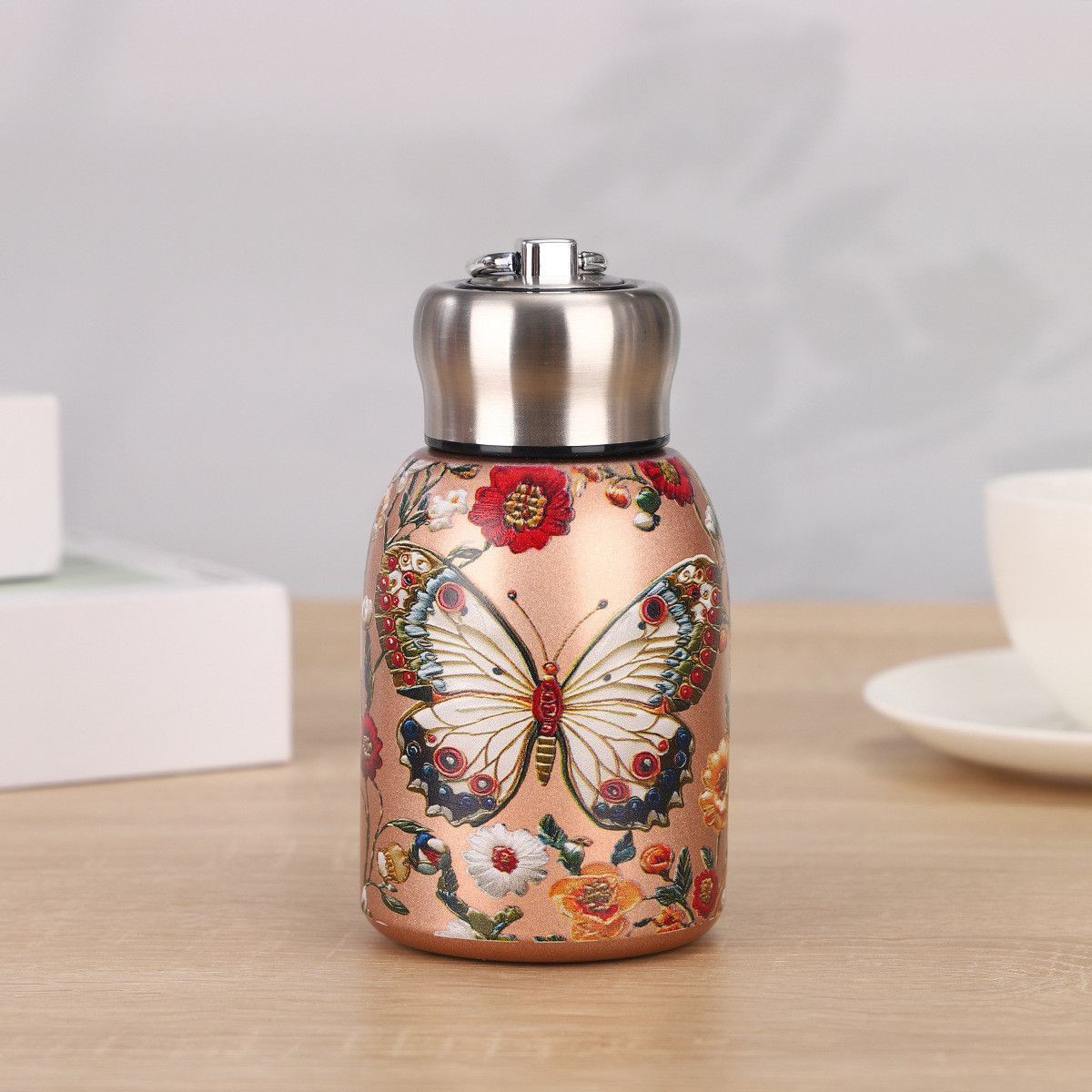 复古国潮风孔雀小胖丁保温杯便携提手办公室不锈钢水杯口袋杯