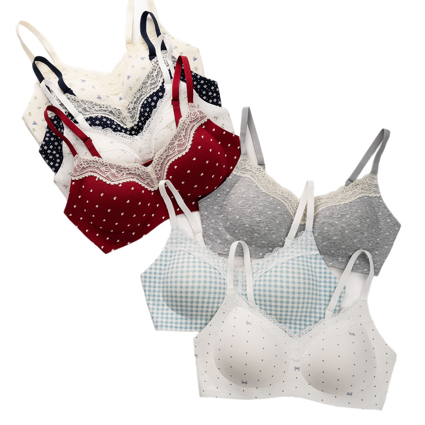 日系无痕舒适薄款内衣女小胸聚拢防下垂法式舒服蕾丝学生少女文胸