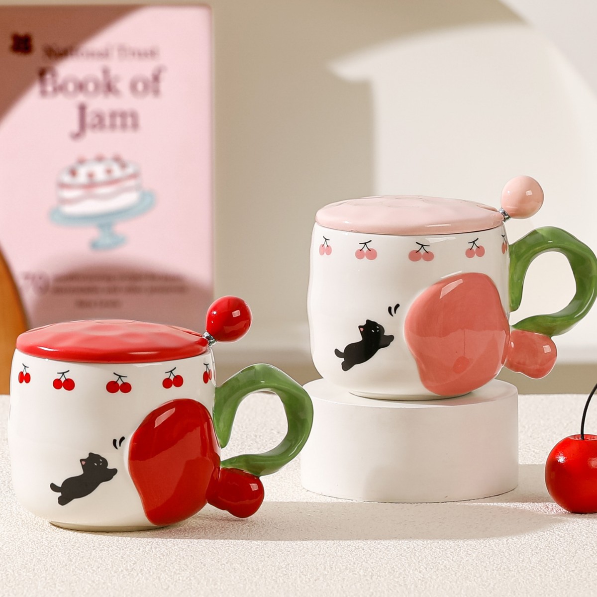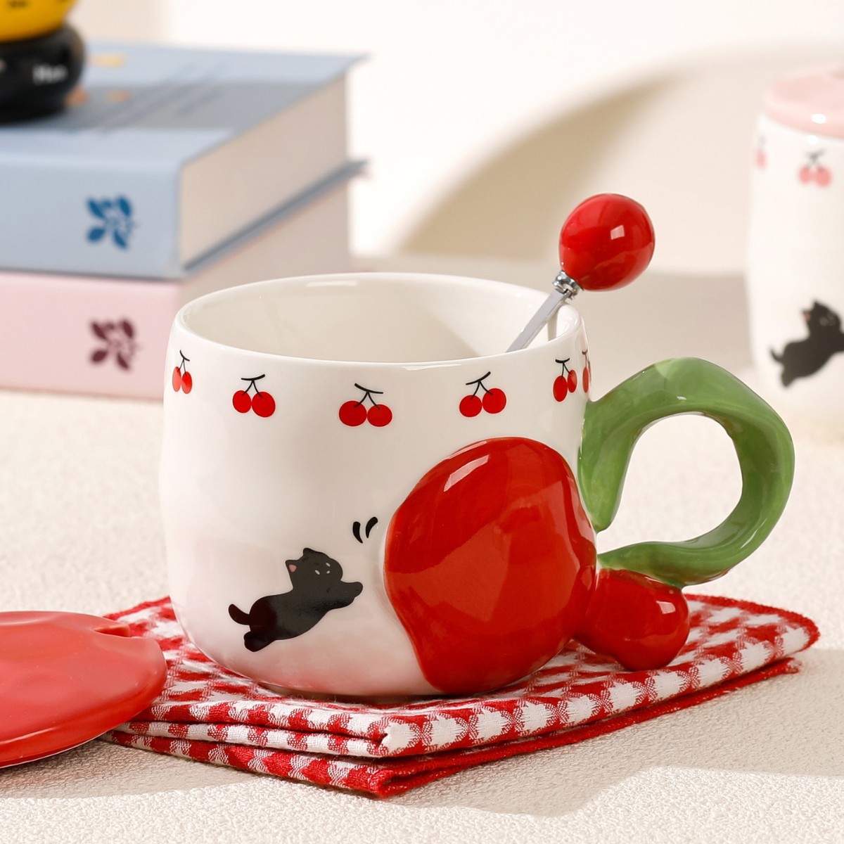 | 颜色 | 可爱猫咪樱桃杯-红(带盖勺)) | 颜色 | 可爱猫咪樱桃杯-粉(带盖勺) |