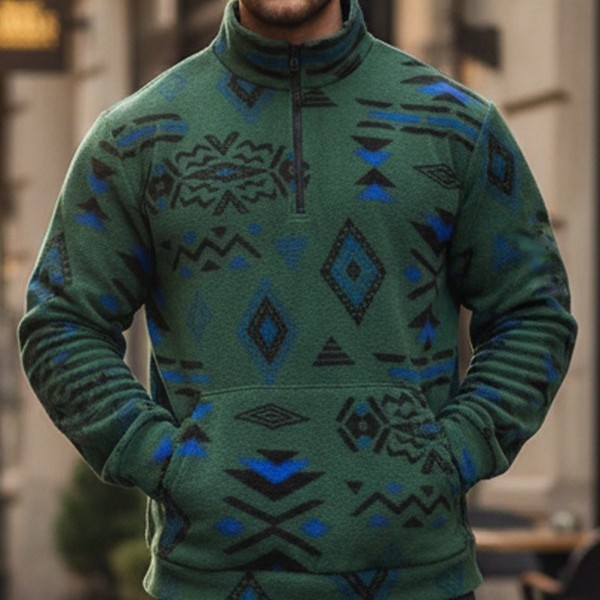 2025冬季新款跨境热卖时尚男士卫衣半拉链立领套头街头休闲男装